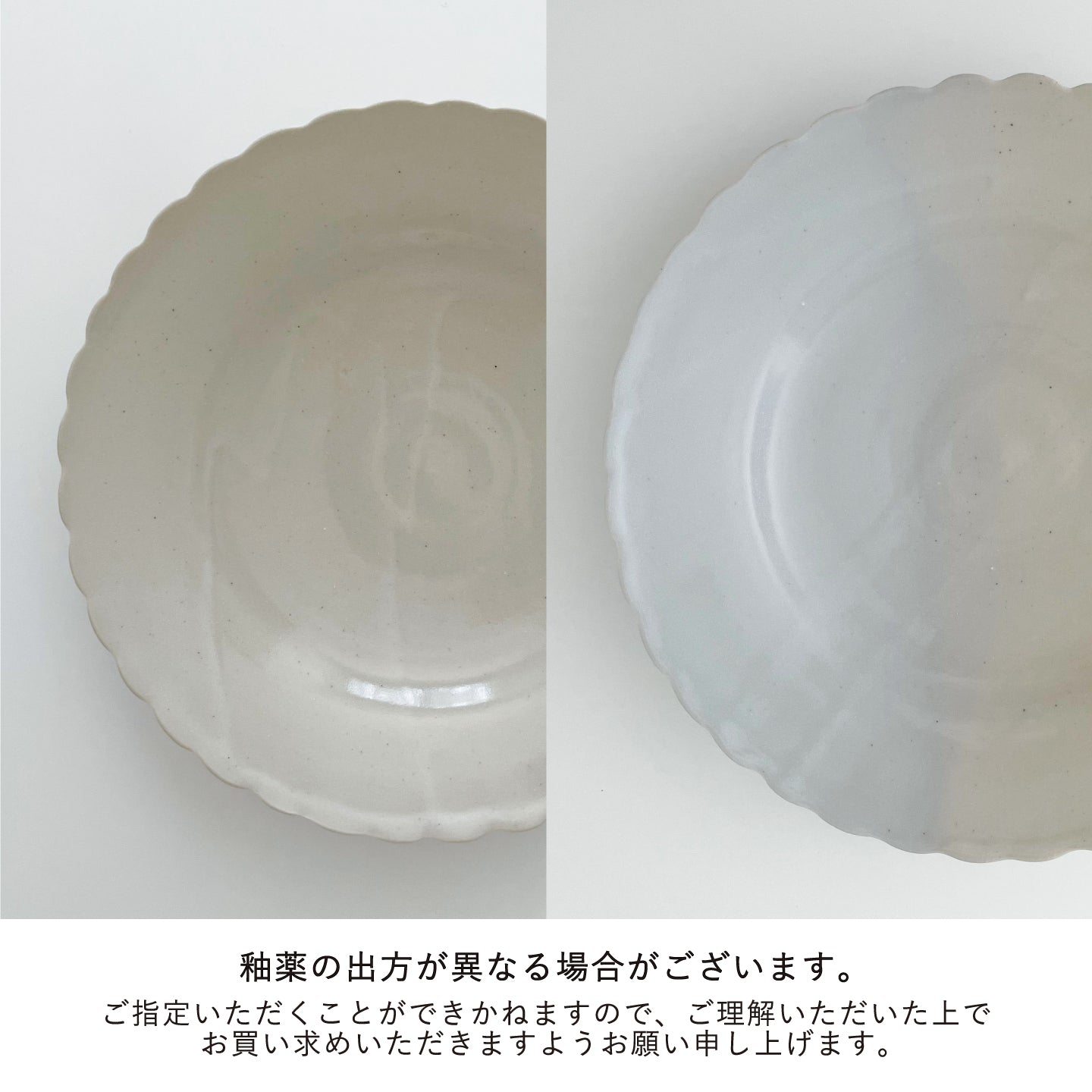 ・釉薬の出方が異なる場合がございます。ご指定いただくことはできかねますので、ご理解いただいた上でお買い求めいただきますようお願い申し上げます。