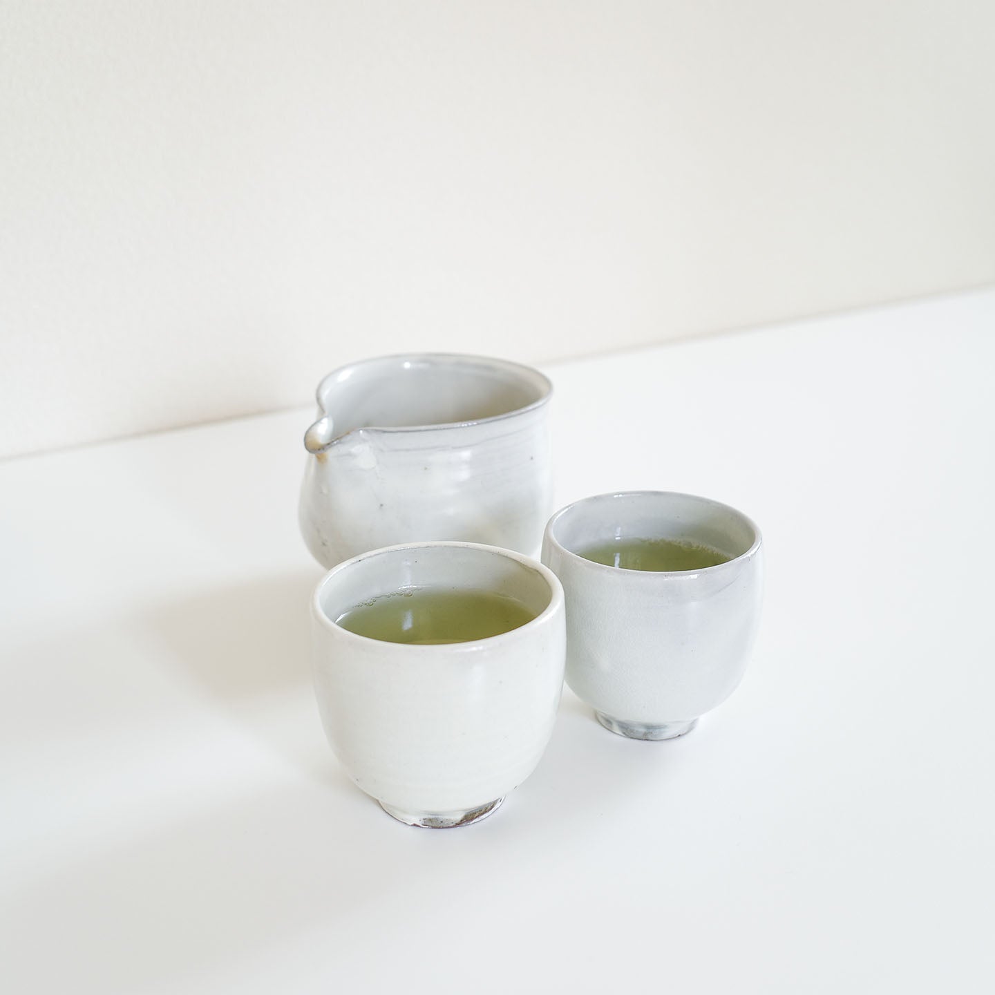 「粉引煎茶盃」は、お揃いの「片口」と合わせるのもおすすめ。小ぶりな杯にお茶を注ぐと、なんだかいつものお茶も特別な感じに。お茶のある日々をもっと豊かにしてくれるに違いありません。