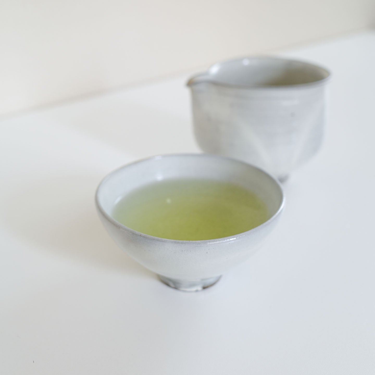 「粉引煎茶盃」は、お揃いの「片口」と合わせるのもおすすめ。小ぶりな杯にお茶を注ぐと、なんだかいつものお茶も特別な感じに。お茶のある日々をもっと豊かにしてくれるに違いありません。