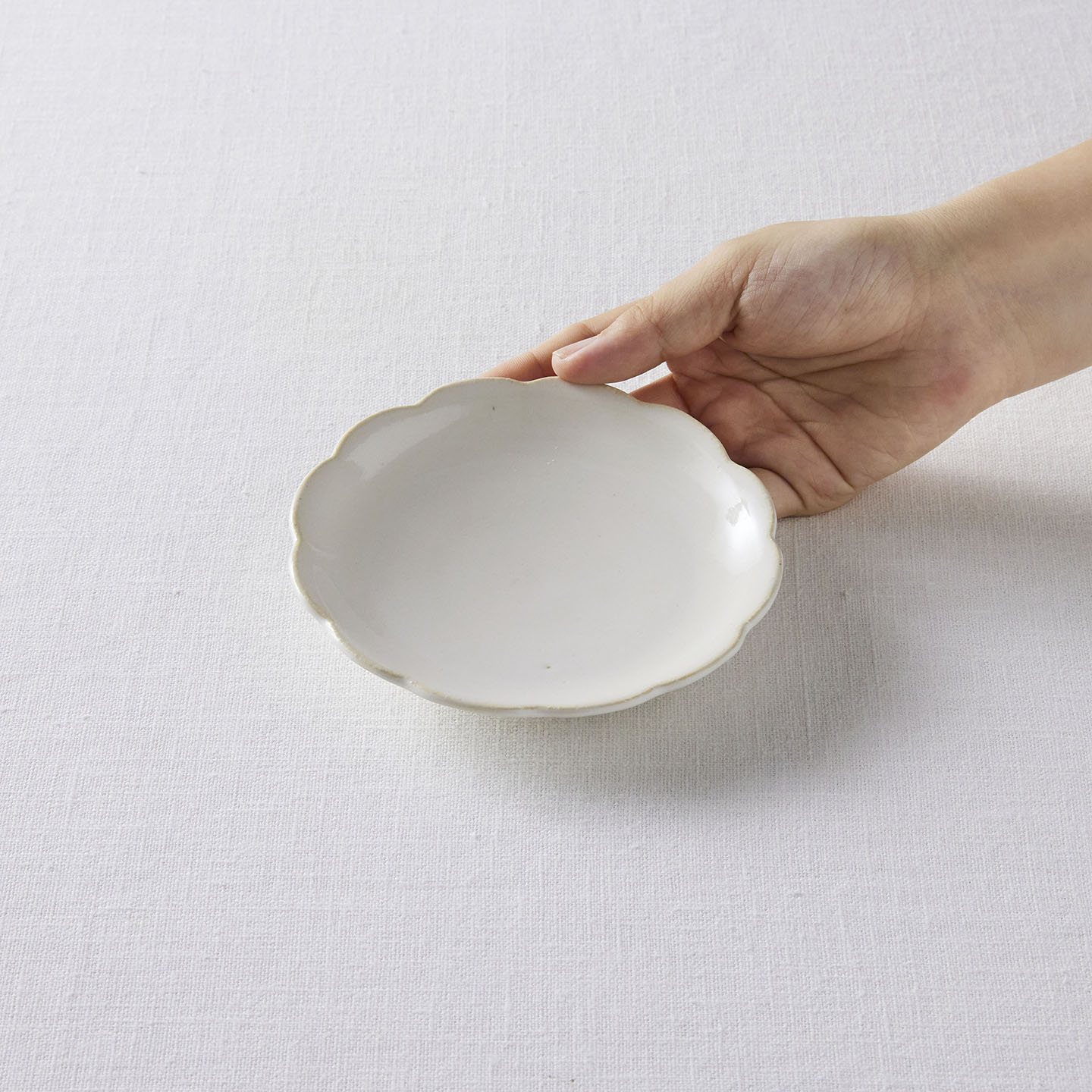 ヒラヒラしていてかわいいお皿だなーと思い、購入しました。目跡「あり」と「なし」があると商品説明に書かれてあり、どっちが来るだろうー?と楽しみにしていましたが、目跡あり!個人的に目跡が大好きなもので嬉しかったです。そして、このヒラヒラがなんとも美しく、想像以上にかわいかった。お気に入りです。