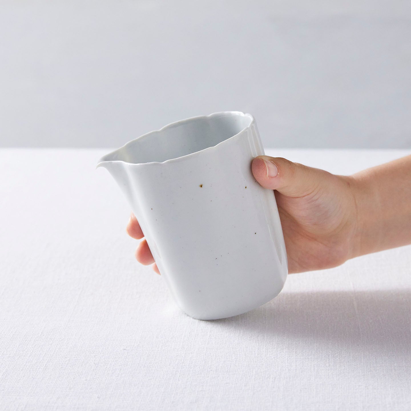 表面の波打つようなうねりが美しい「茶海(大)」。磁器がもつ凛とした雰囲気を保ちながらも、冷たくなりすぎずないシックな塩梅はEliuさんの器ならでは。
