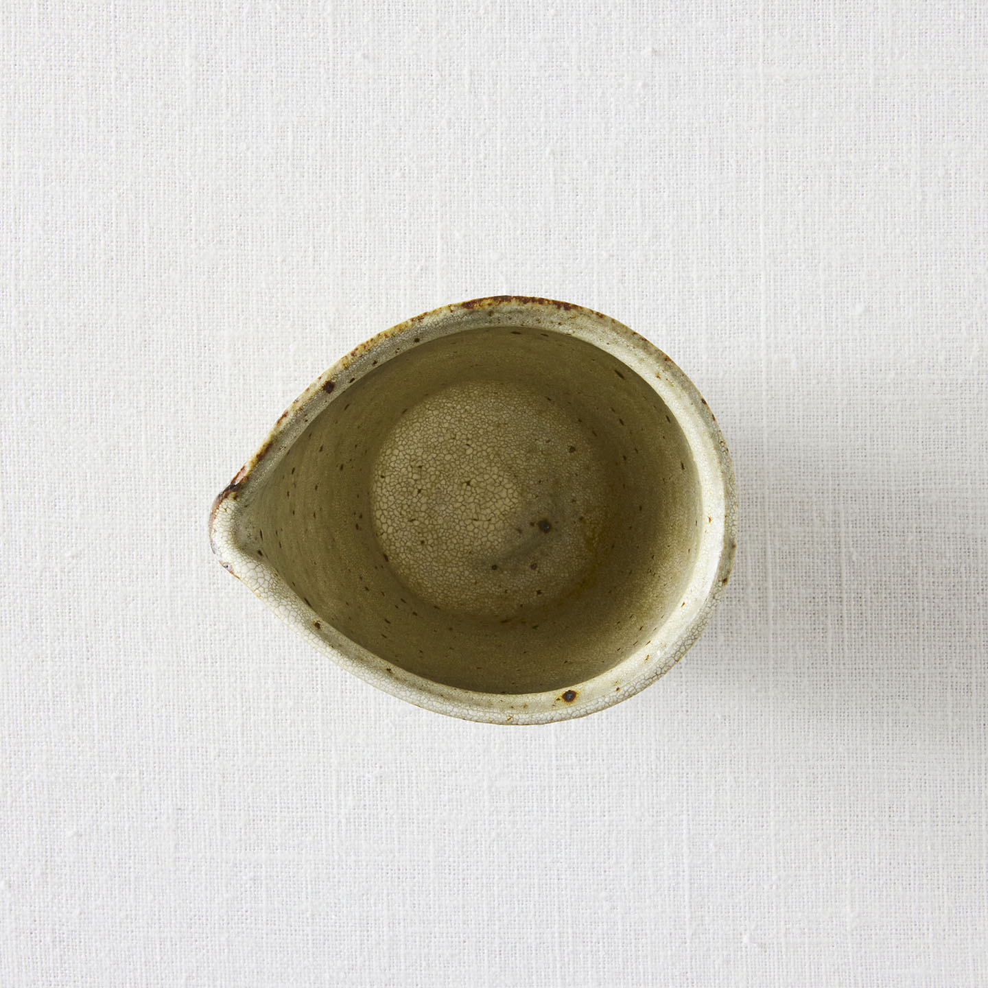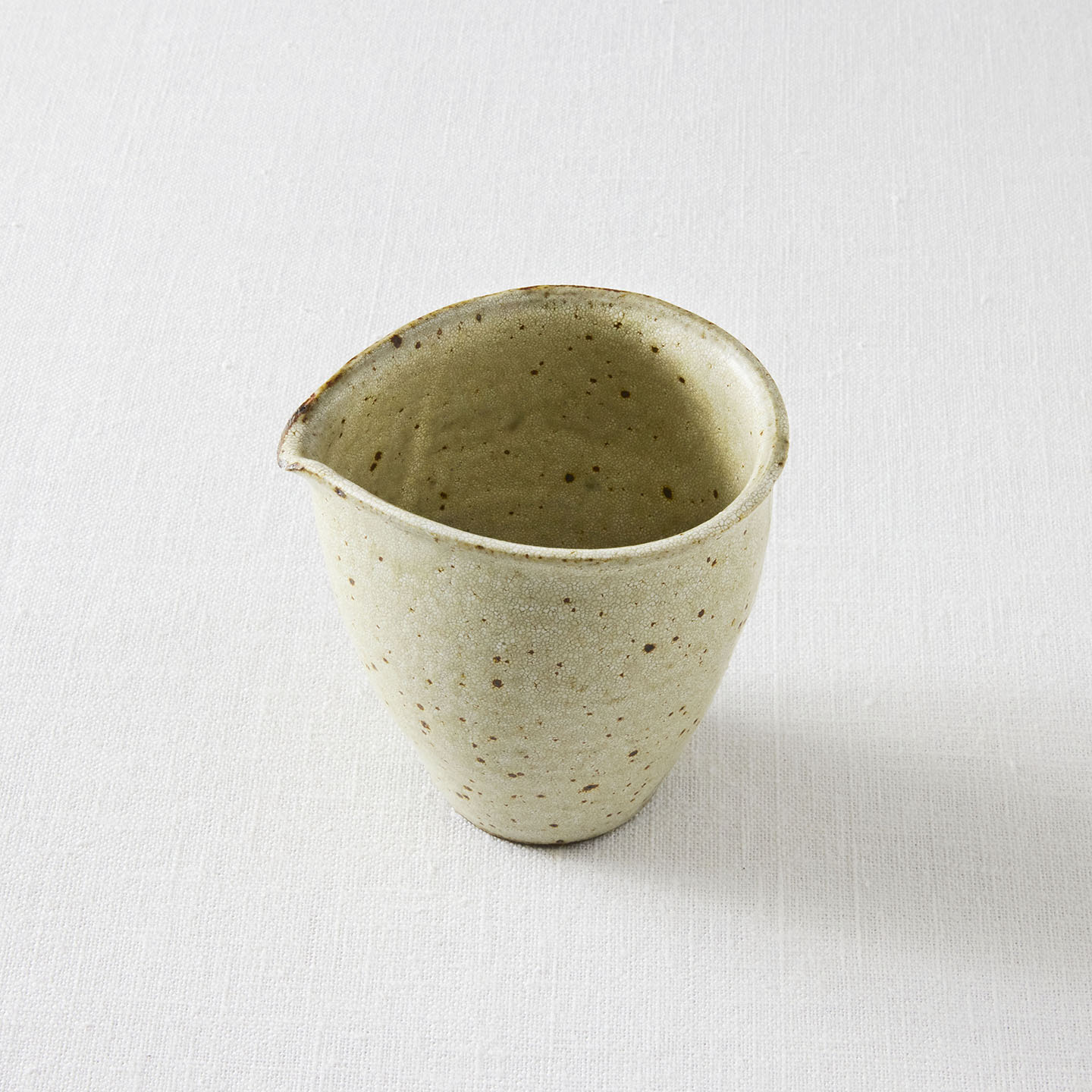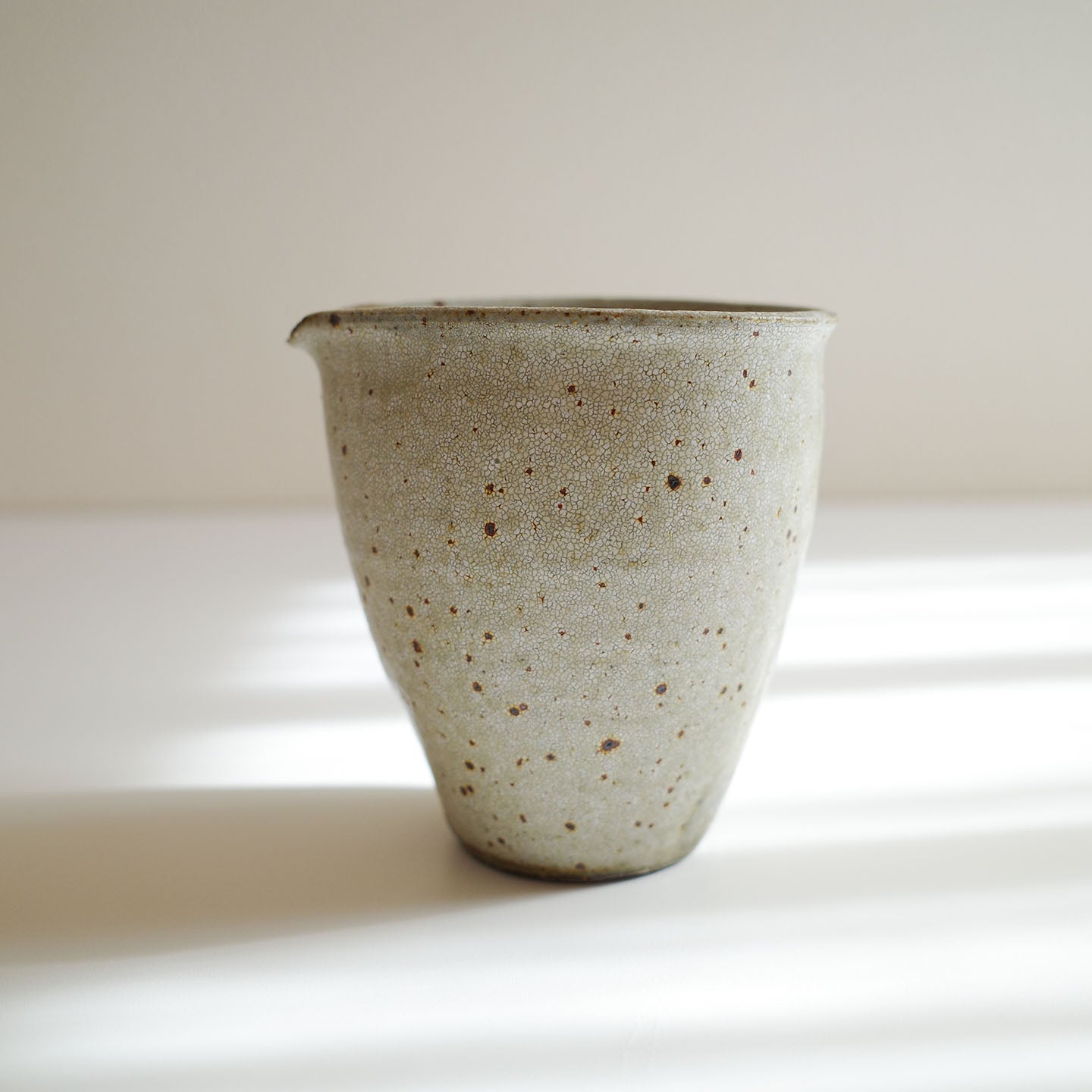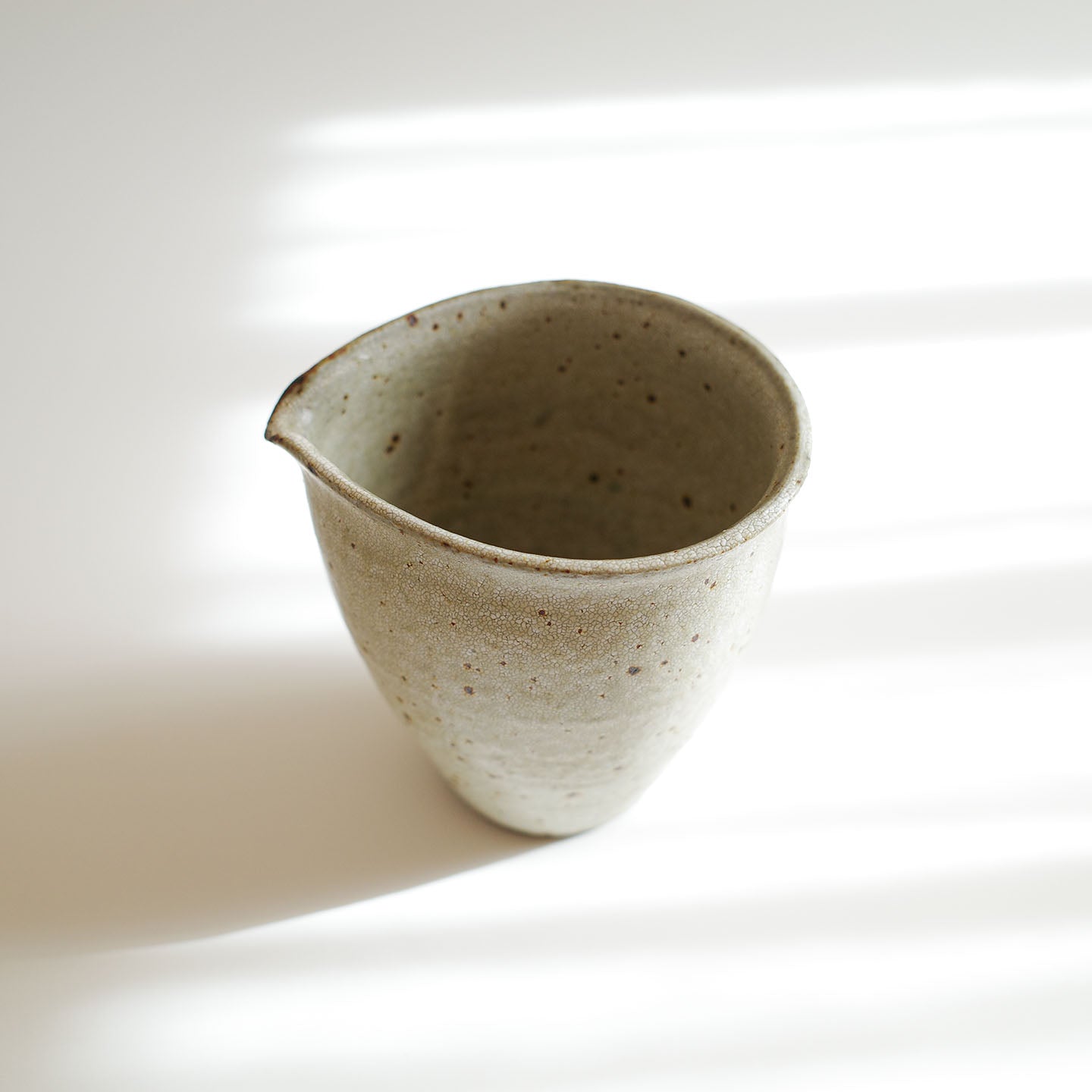 いくつかシリーズのある天野さんの器ですが、お取り扱いするのはその中でも「ヒビ粉引」のお茶道具。ヒビ粉引の「片口」をご紹介します。
