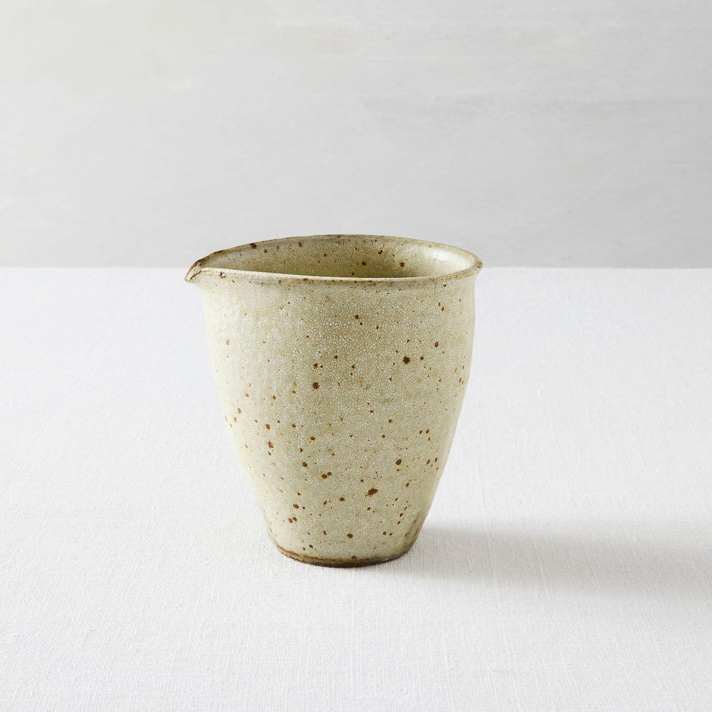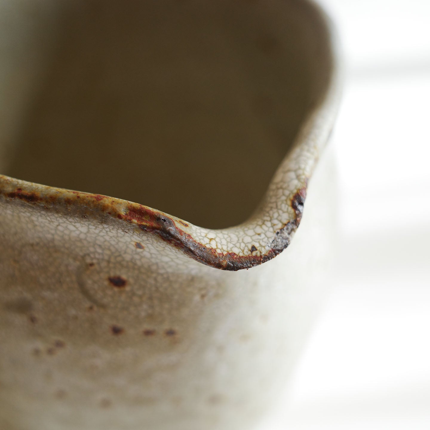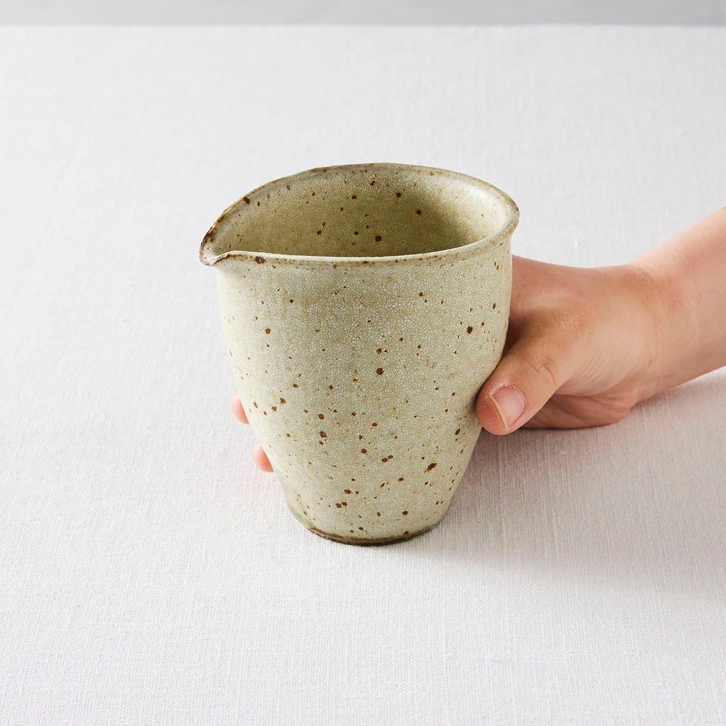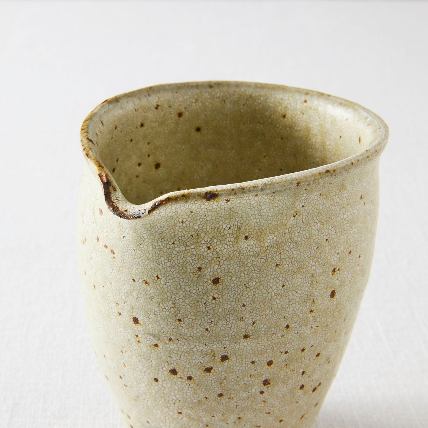 いくつかシリーズのある天野さんの器ですが、お取り扱いするのはその中でも「ヒビ粉引」のお茶道具。ヒビ粉引の「片口」をご紹介します。