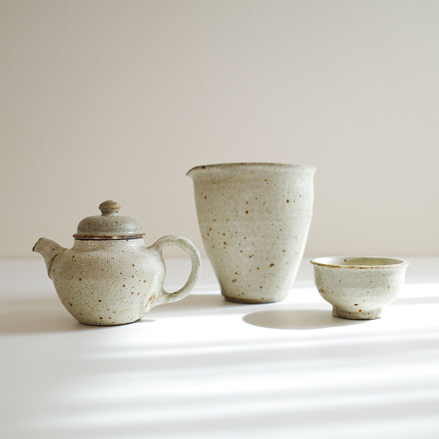 今回取り扱う作品「ヒビ粉引後手急須 茶壺」「ヒビ粉引片口」「ヒビ粉引茶杯」は、粉引ならではの表情の豊かさが魅力です。作品に込めたこだわりをお聞かせください。