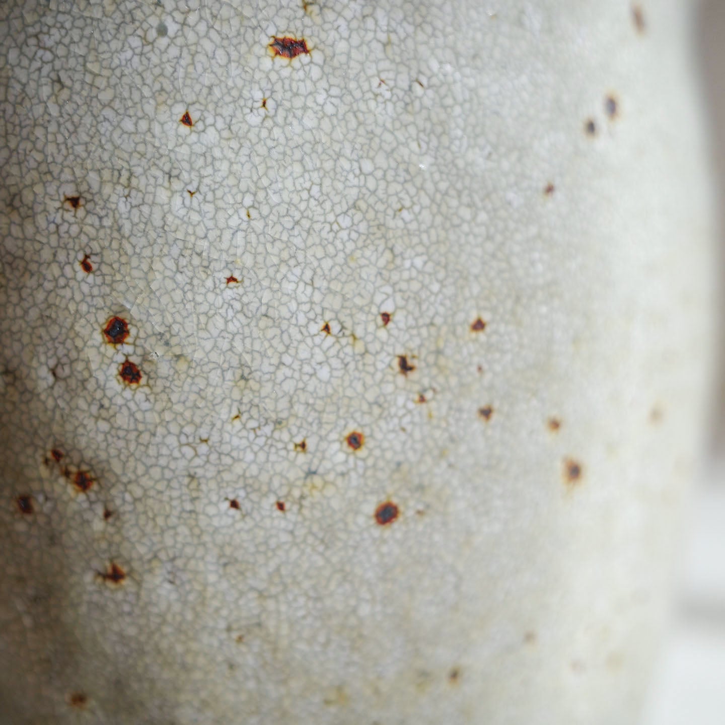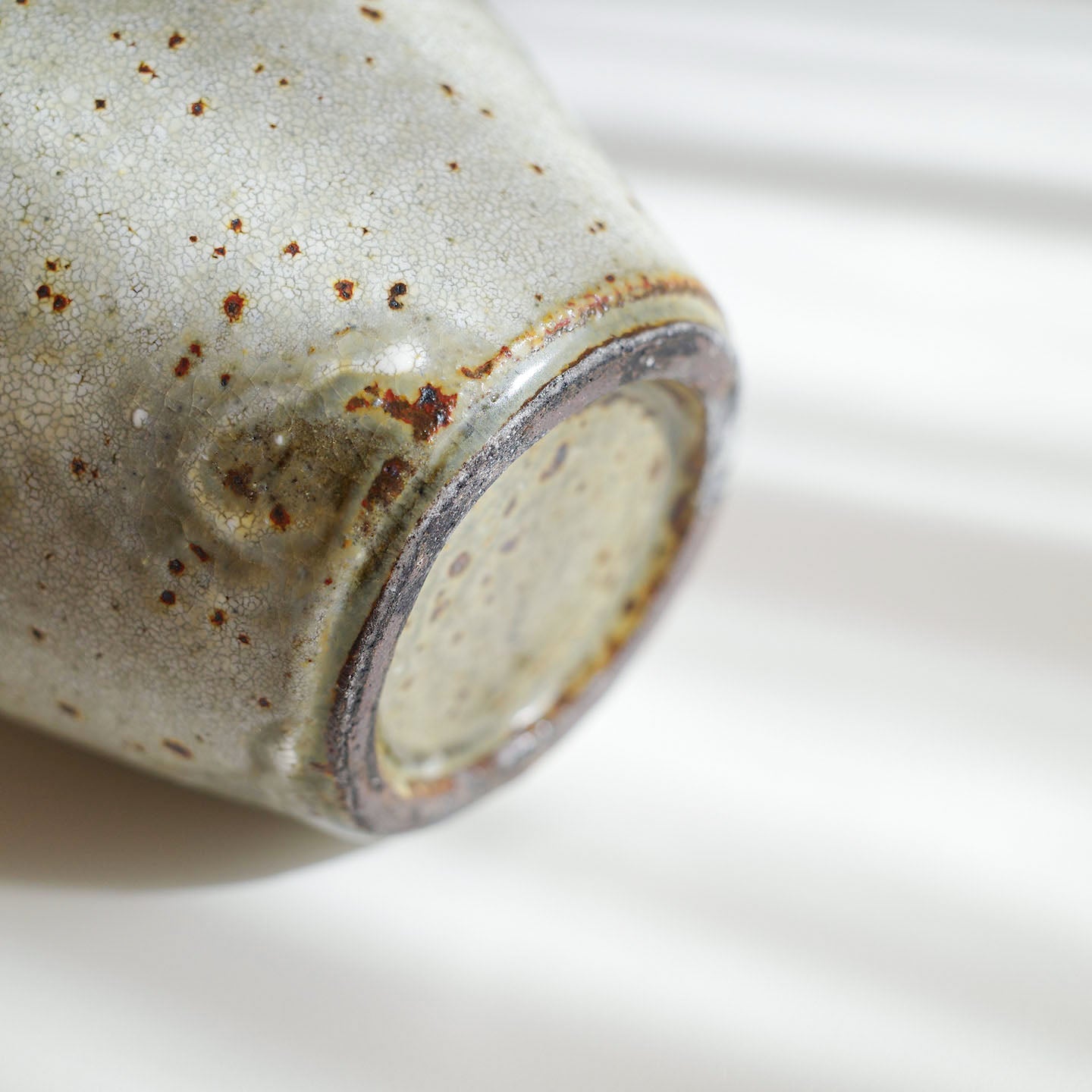 赤土・白化粧・釉薬と3層で構成されるゆえに、白化粧の濃淡や赤土がうっすら透けたり、赤土に含まれる鉄粉が吹き出したり、様々な表現を見せるところが、粉引の魅力かと思っています。