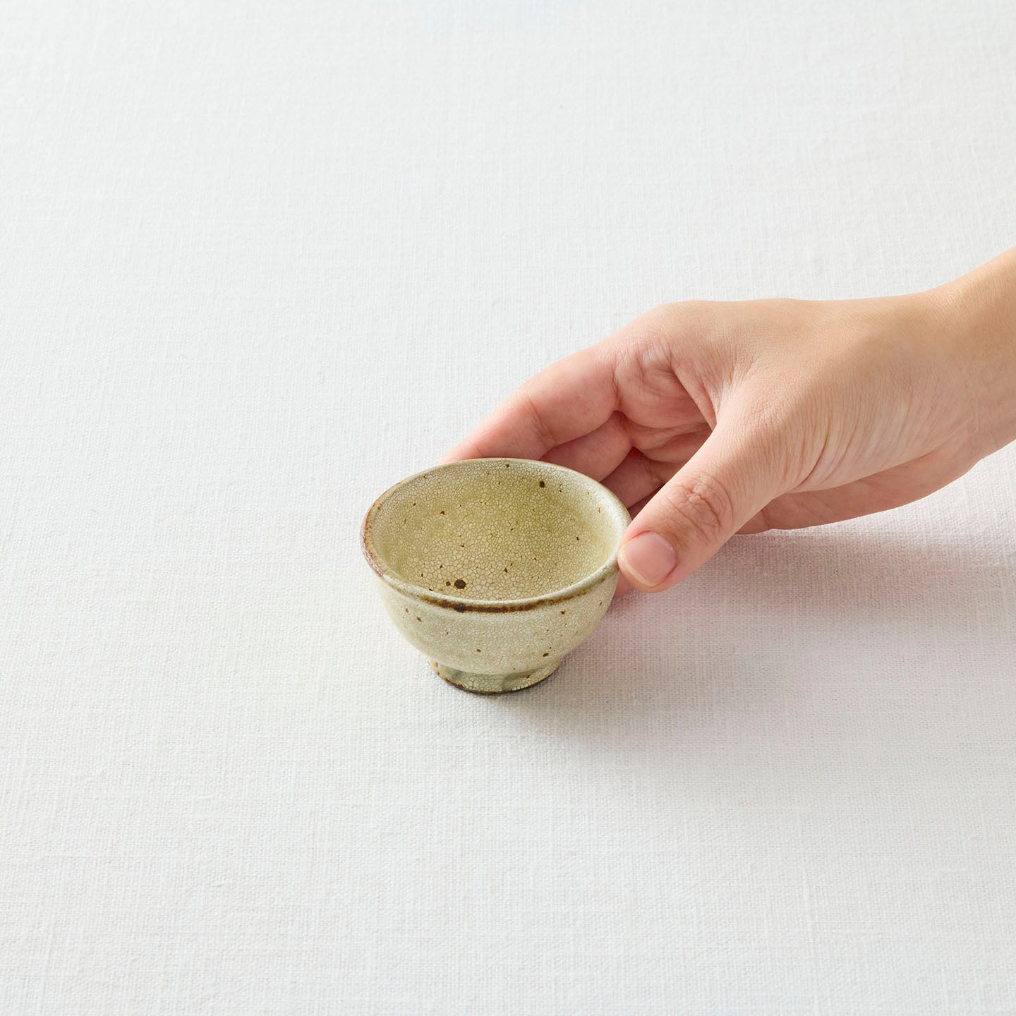 今後ご案内する天野さんの「ヒビ粉引 後手急須」から注ぐと、3〜4杯楽しめる小さな茶杯。少しずつ飲みながら、ゆったりとした時間をお過ごしください。