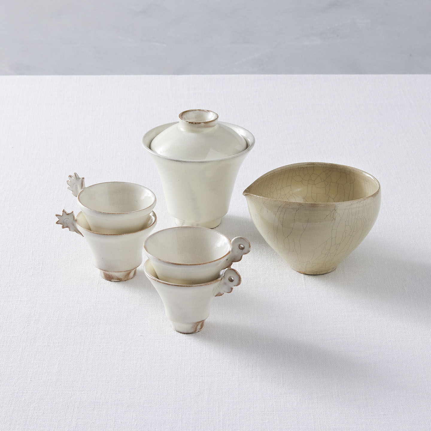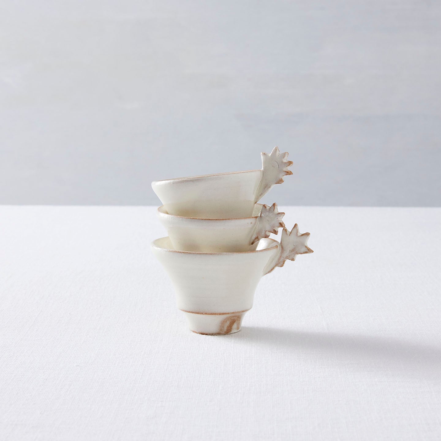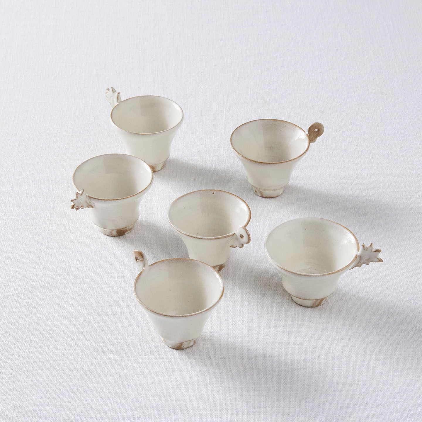 ・ひとつひとつ、手作業で型から形を起こしています。釉薬の加減や色合い、大きさなど全て同じものではございません。それぞれの表情をお楽しみください。