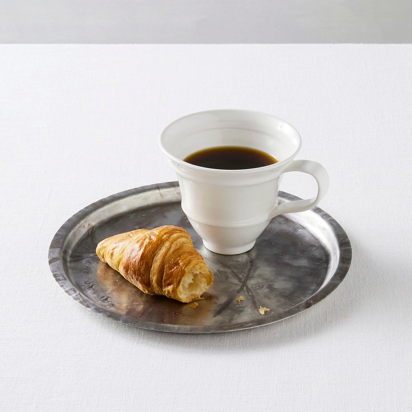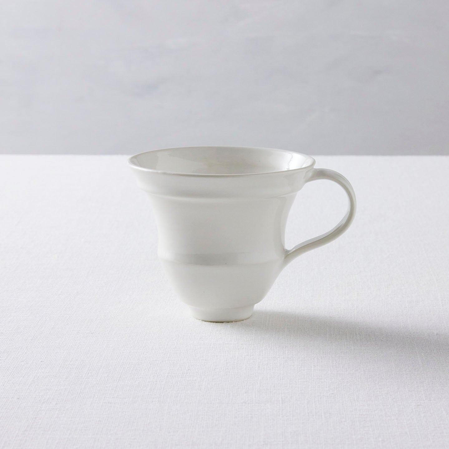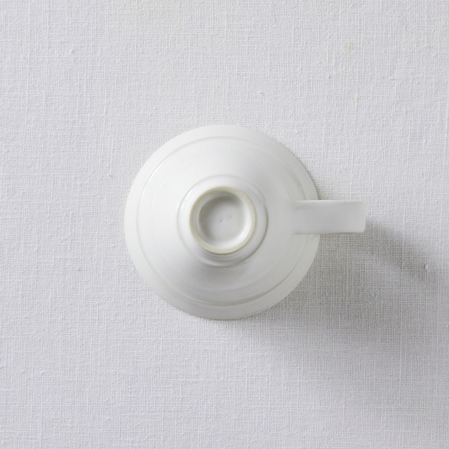 つややかな白い釉薬をまとった「カップ」です。ヨーロッパのアンティークカップのような上品さがありながら、たっぷり入る容量で実用性もあり。