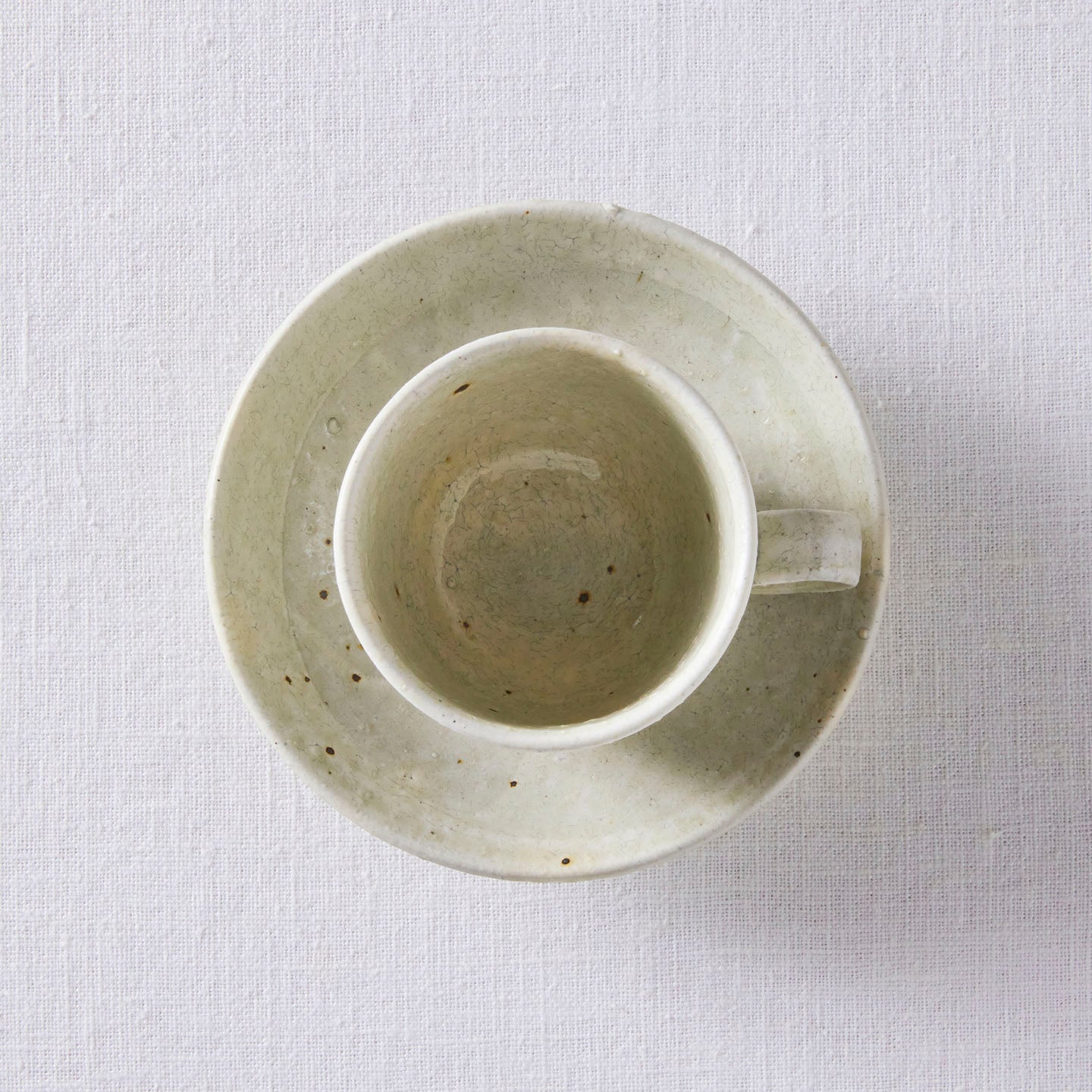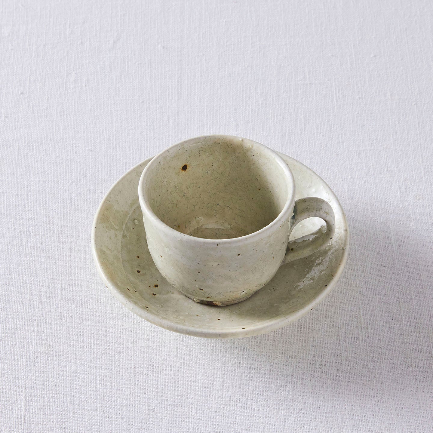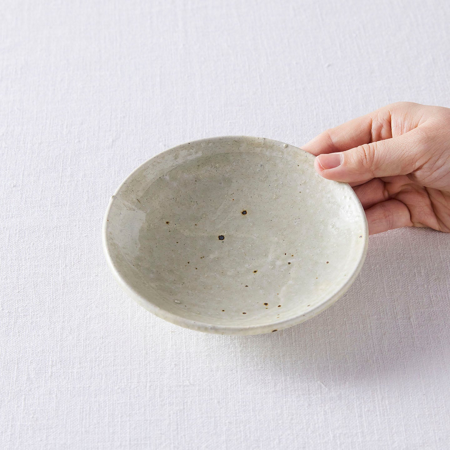 鉄分によって浮かび上がるぽつぽつとある黒い斑点や、釉薬の表面にできたヒビ(貫入)など、手仕事だからこそ味わえる表情もぞんぶんにお楽しみいただけます。