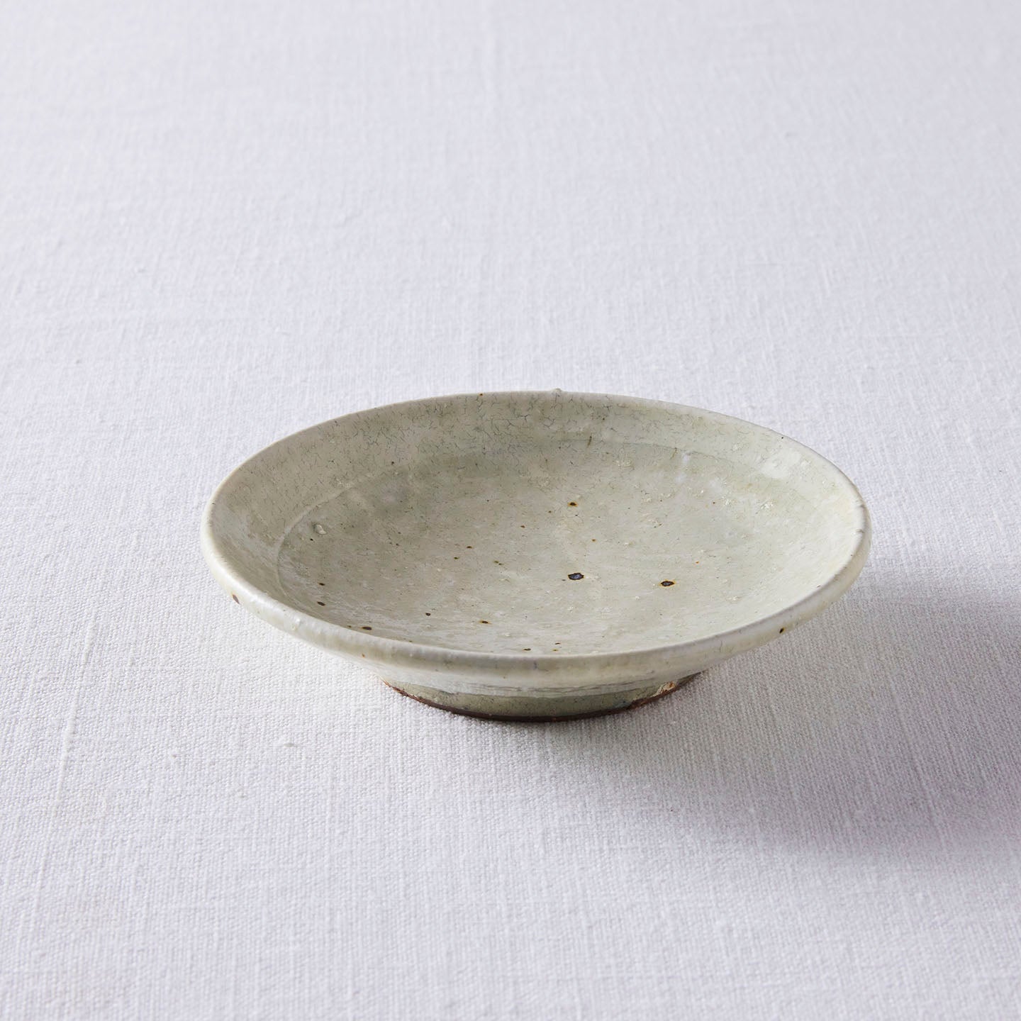 渋めのソーサー。粉引という技法で作られていて、落ち着いた温かみのある印象です。