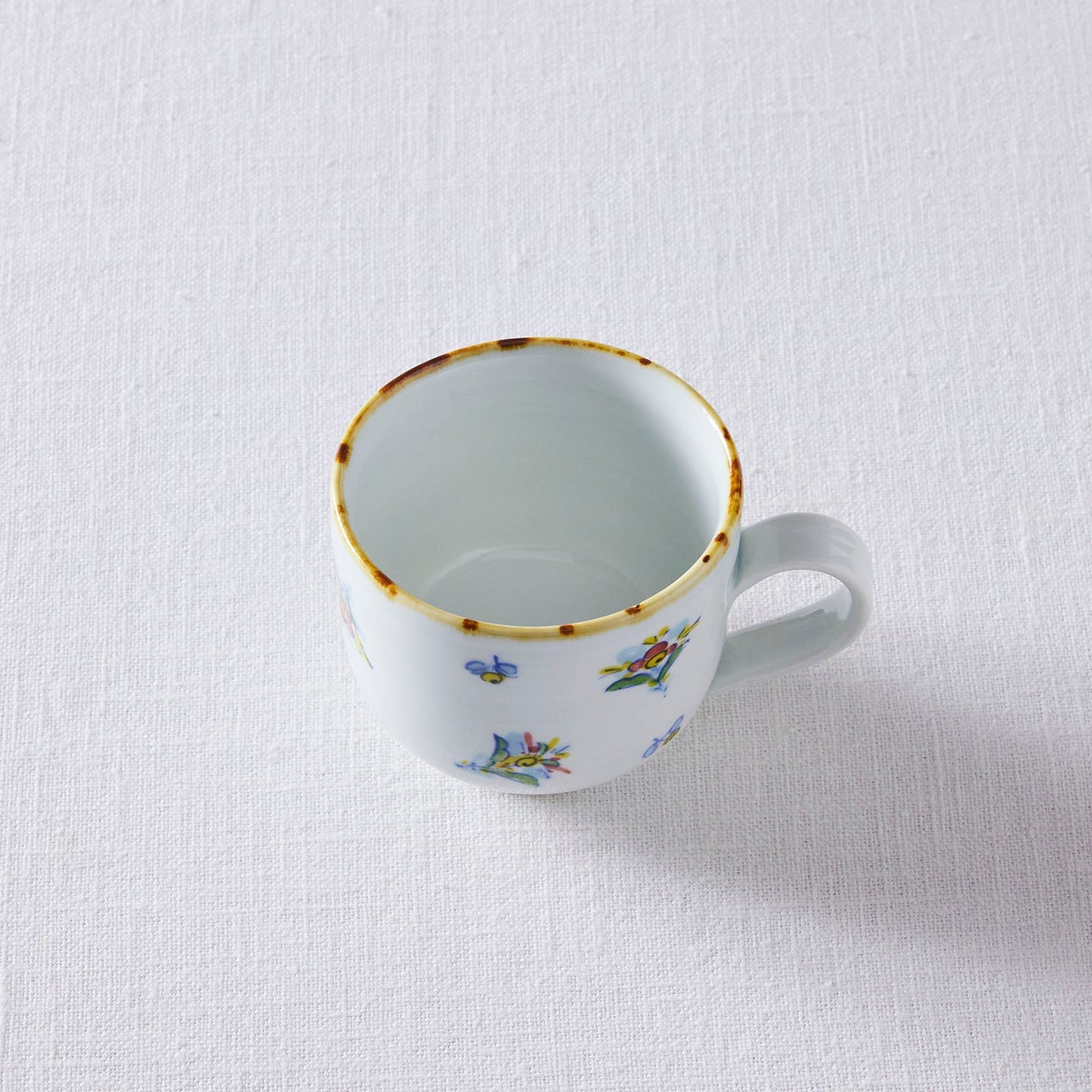 「ティーカップ 花柄」は、色とりどりの花模様が描かれたカップ。小さなブーケが散りばめられたようなデザインはどこかレトロな雰囲気で、懐かしさと新鮮さが共存しています。お茶を飲む瞬間の気分をグッと上げてくれるような、存在感抜群の華やかなカップです。