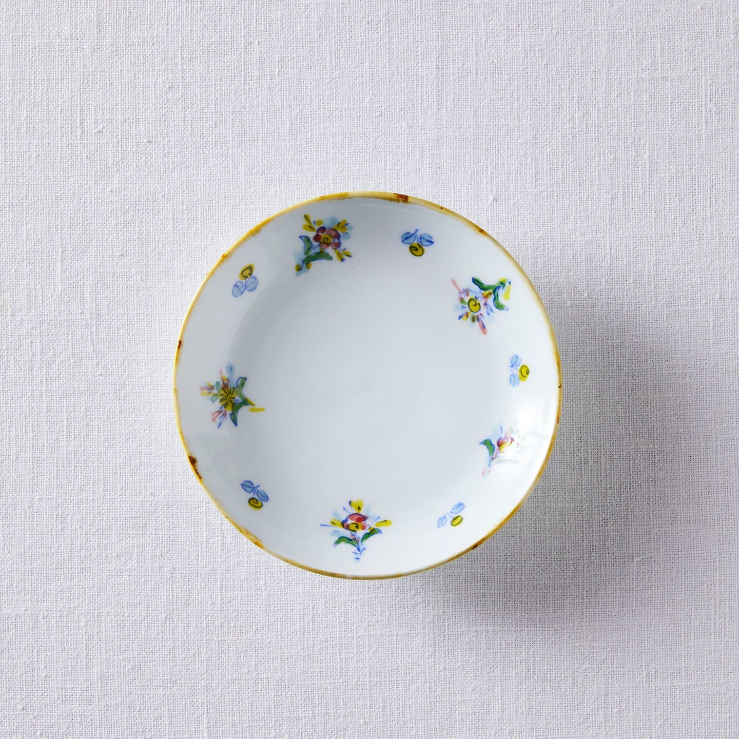 「ソーサー花柄」は、色とりどりの花模様が描かれたソーサー。小さなブーケが散りばめられたようなデザインはどこかレトロな雰囲気で、懐かしさと新鮮さが共存しています。お茶を飲む瞬間の気分をグッと上げてくれるような、存在感抜群の華やかなソーサーです。