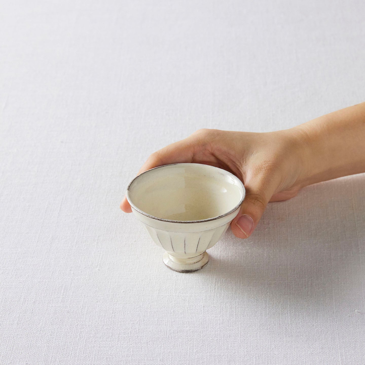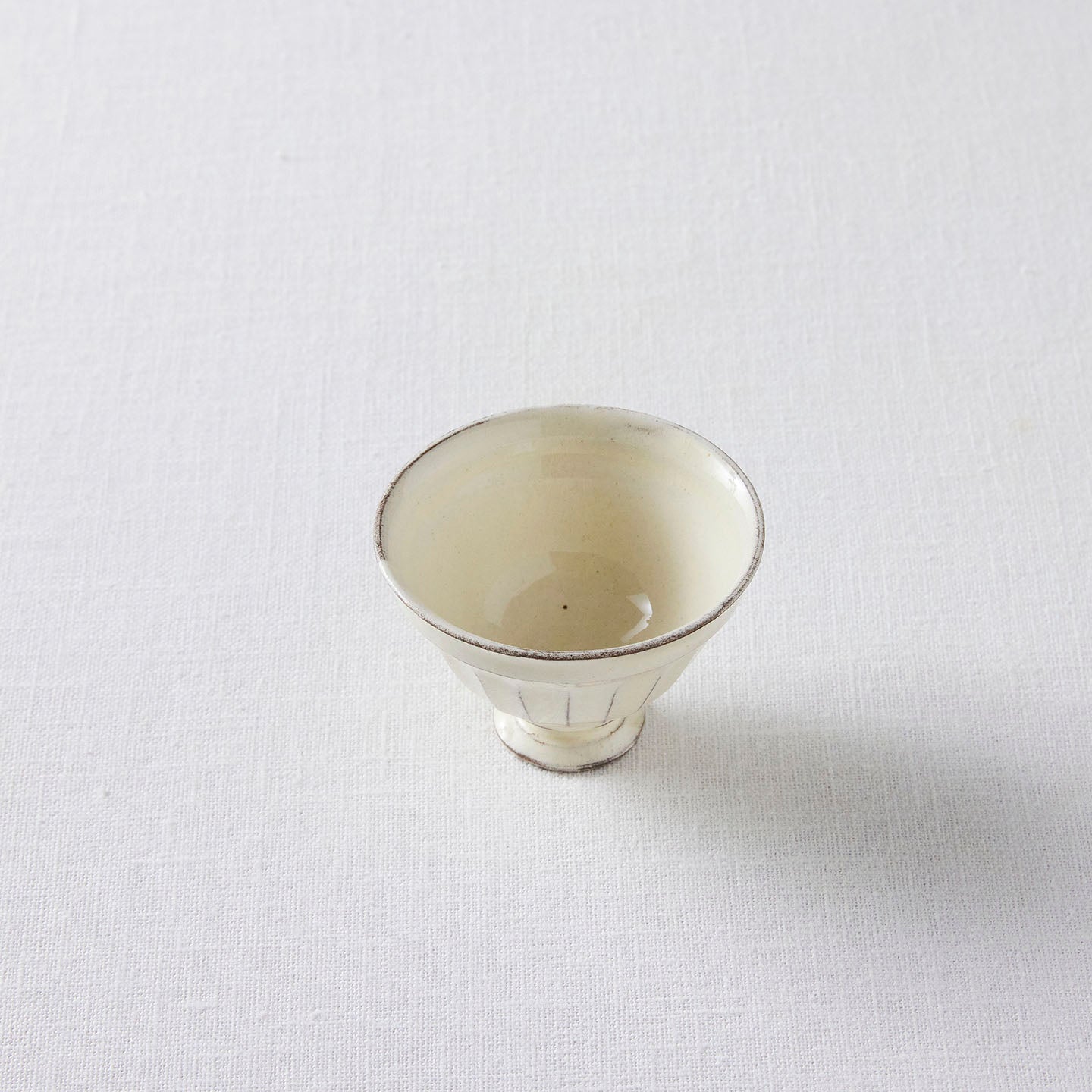 「鎬脚付きボウル」はフランスのカフェオレボウルをグッと小さくしたようなシルエット。いつものお茶が、これに入れるとどことなくおしゃれな佇まいに。