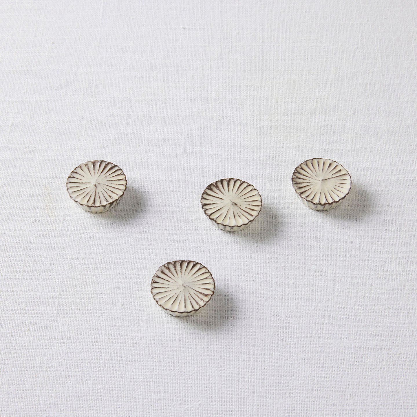 ・ひとつひとつ、手作業で型から形を起こしています。釉薬の加減や色合い、大きさなど全て同じものではございません。それぞれの表情をお楽しみください。