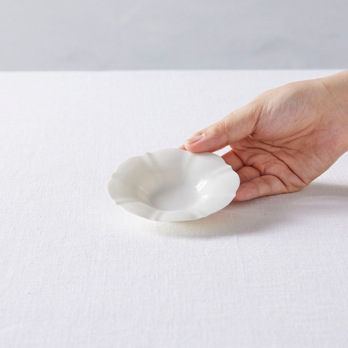 この部分が白磁の繊細で大変なところでもあり、他にはない魅力です。白磁はレリーフや造形によって陰影が生まれます。純粋で薄手な白の磁器は光を通すことで、唯一無二の透明感を放ちます。光の当たり具合や強弱によって、同じ白でもさまざまな表情を見せるんです。