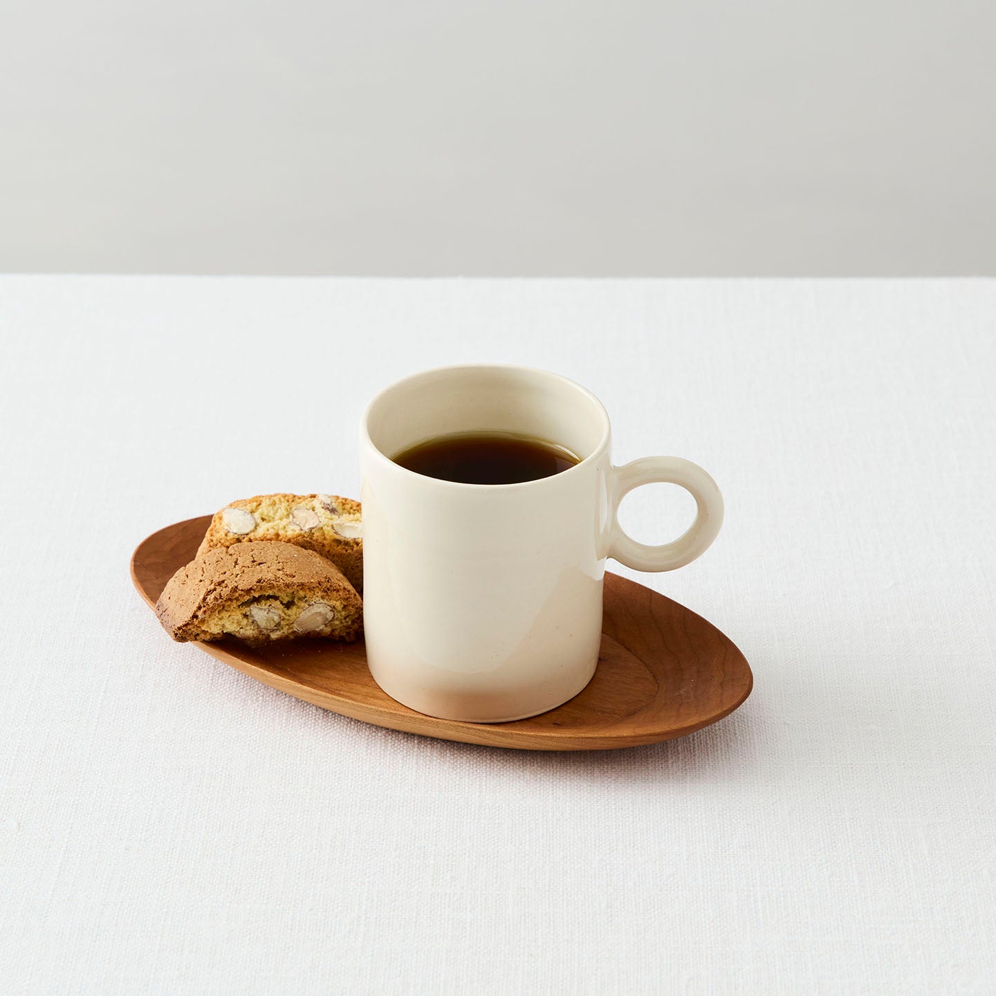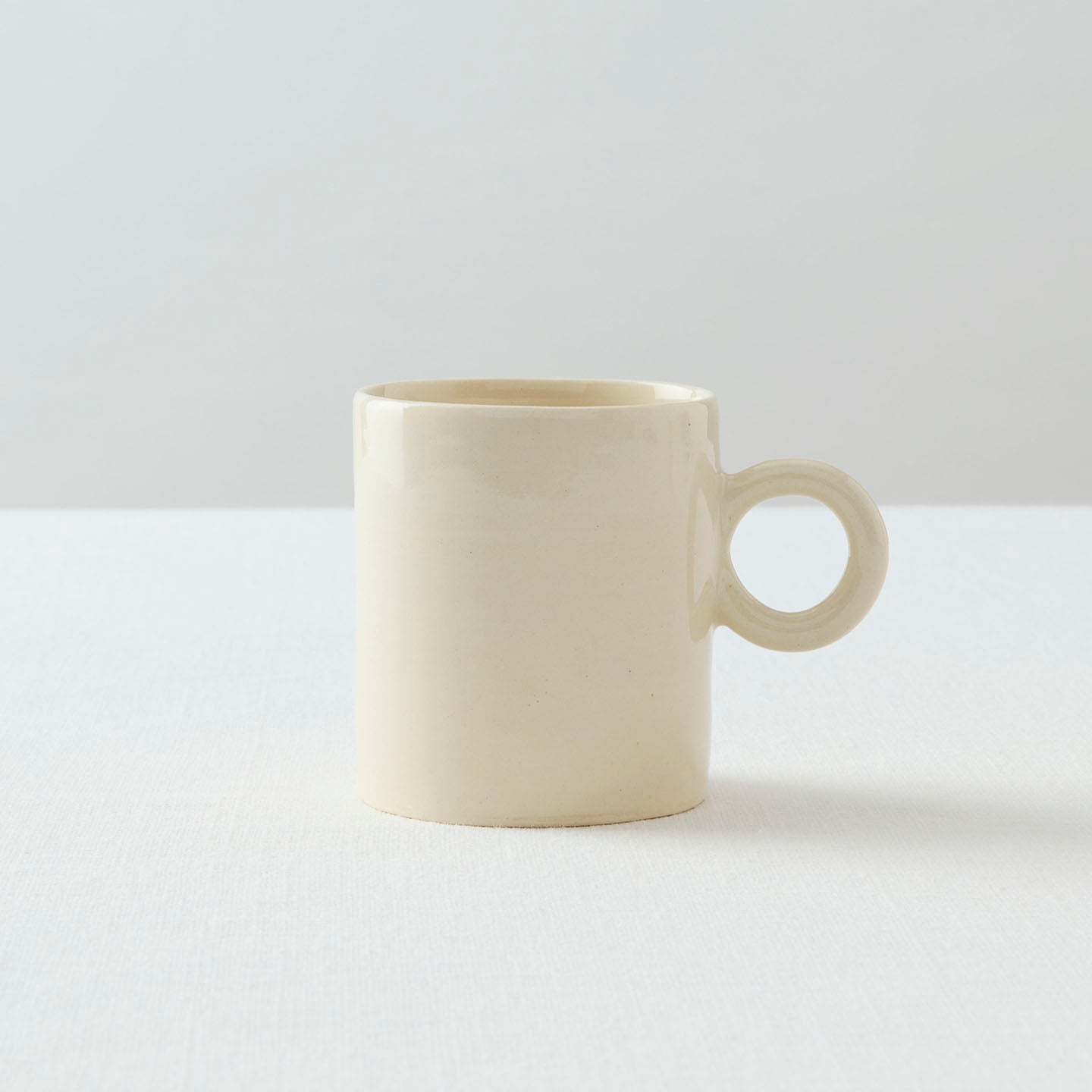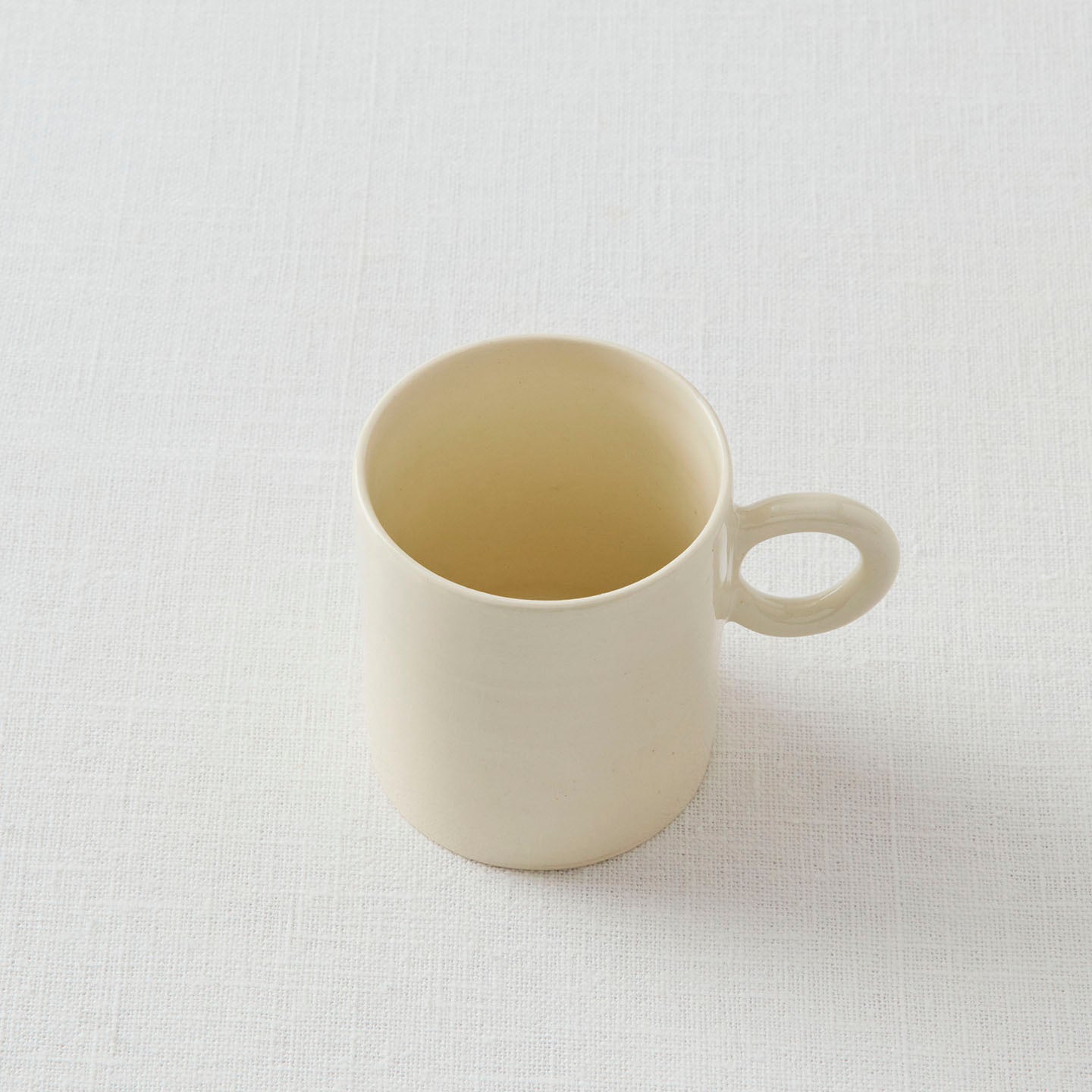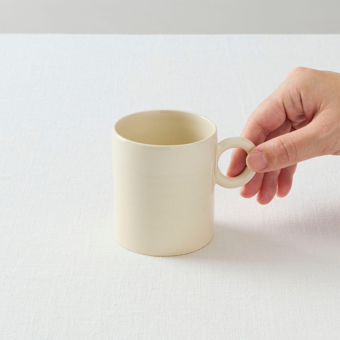 テーブルに置いて眺めてもいいですが、取っ手の輪っかをキッチンのフックに引っ掛けてみたくなりますね。誰かとお揃いにして使ってもいい。何を淹れようか。そんな想像が膨らんで、使うたびに静かに心躍らされるマグカップです。
