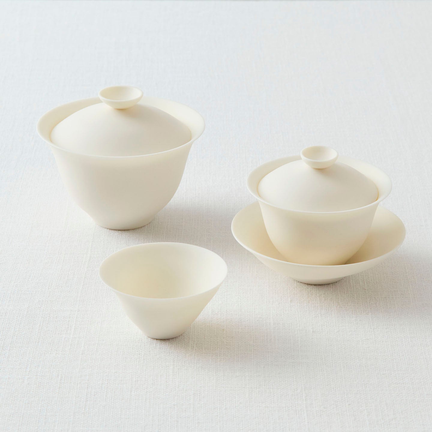 食器やランプシェードなどさまざまな作品を制作している林さんの作品から、柔らかな曲線と、あたたかい白の磁器の質感が魅力的な中国茶器のシリーズをご紹介します。