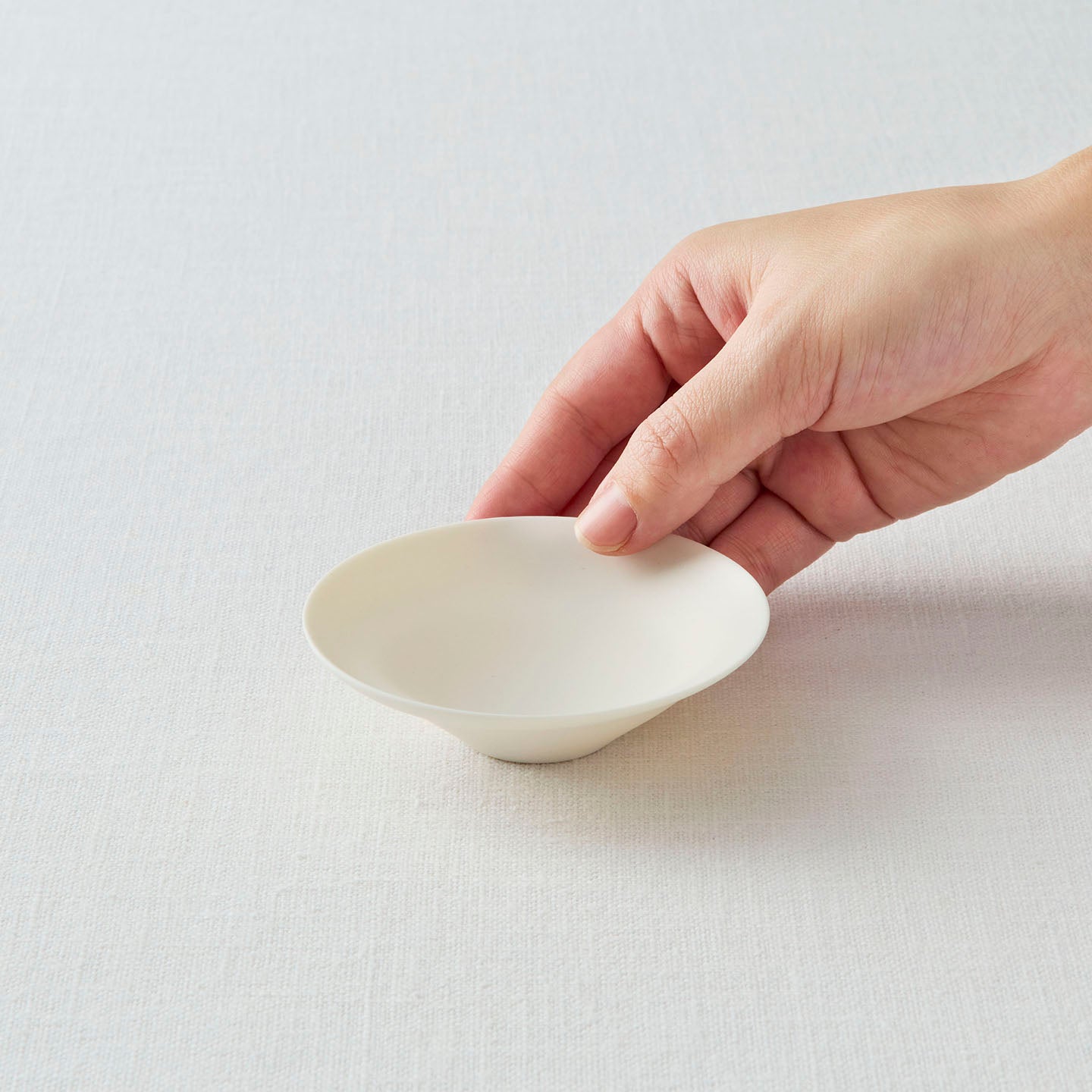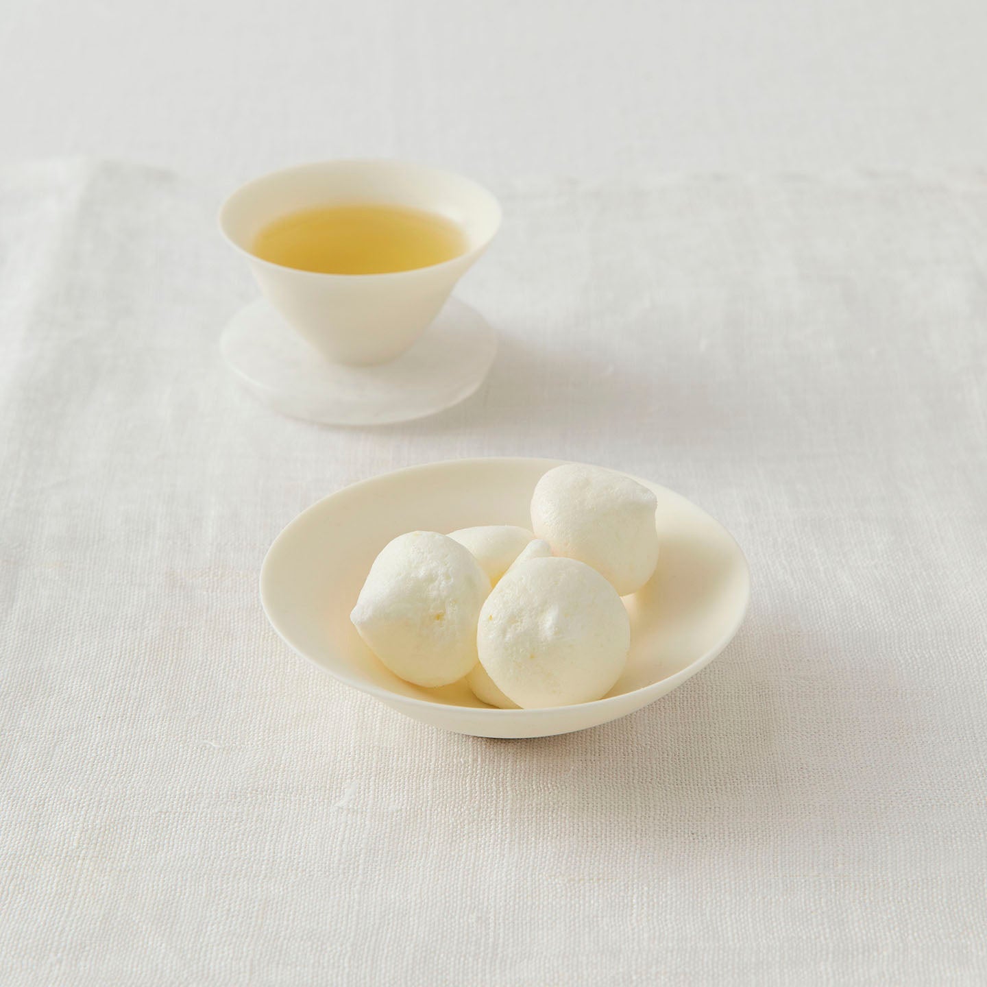 茶杯とセットにすると、白い花が咲いているような景色に。茶托としてだけでなく、お茶請けを入れたり、単体で器として使うようなアレンジも楽しめそうです。