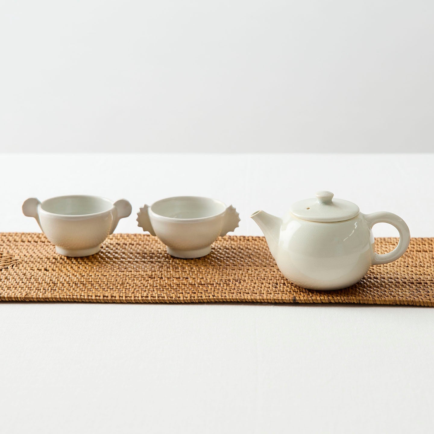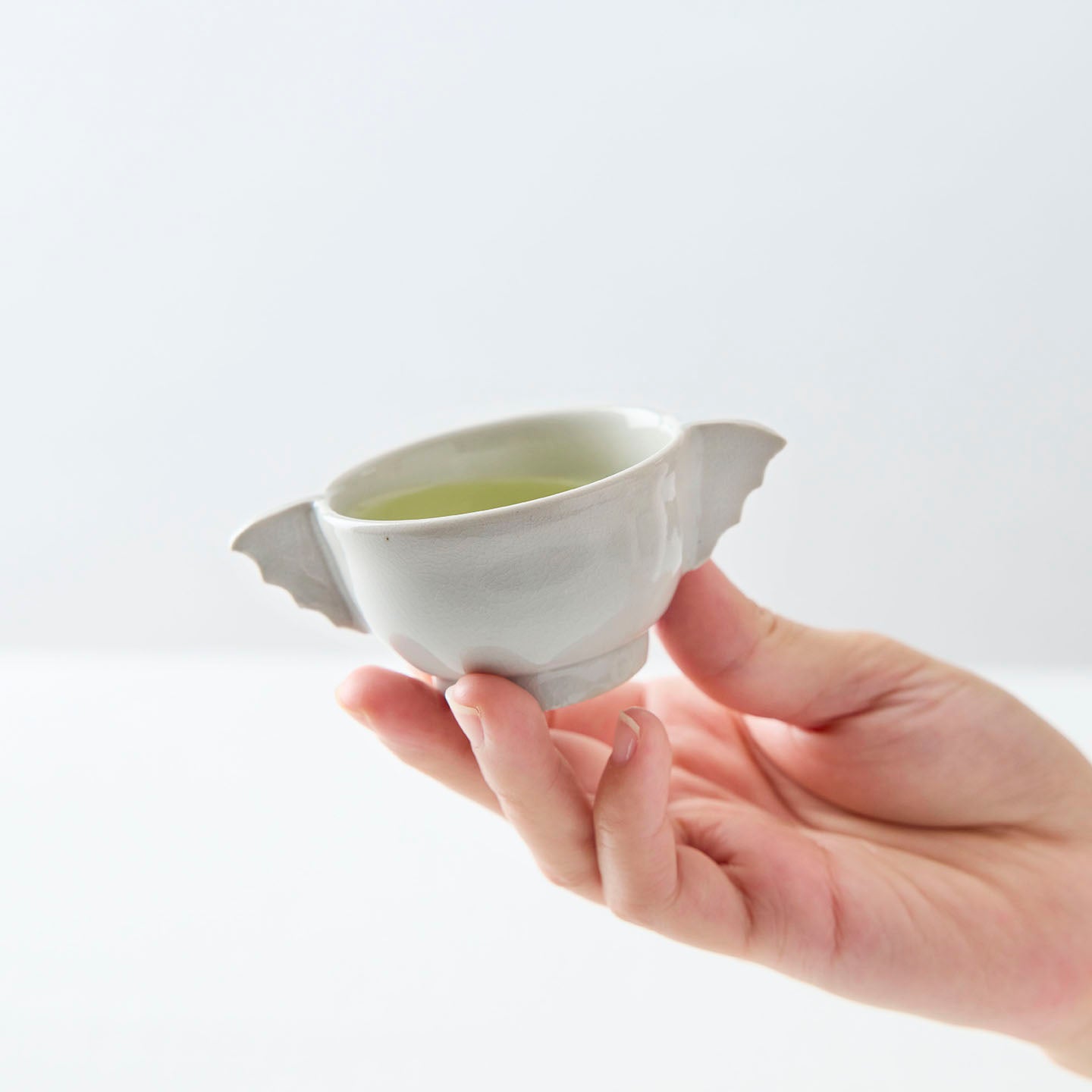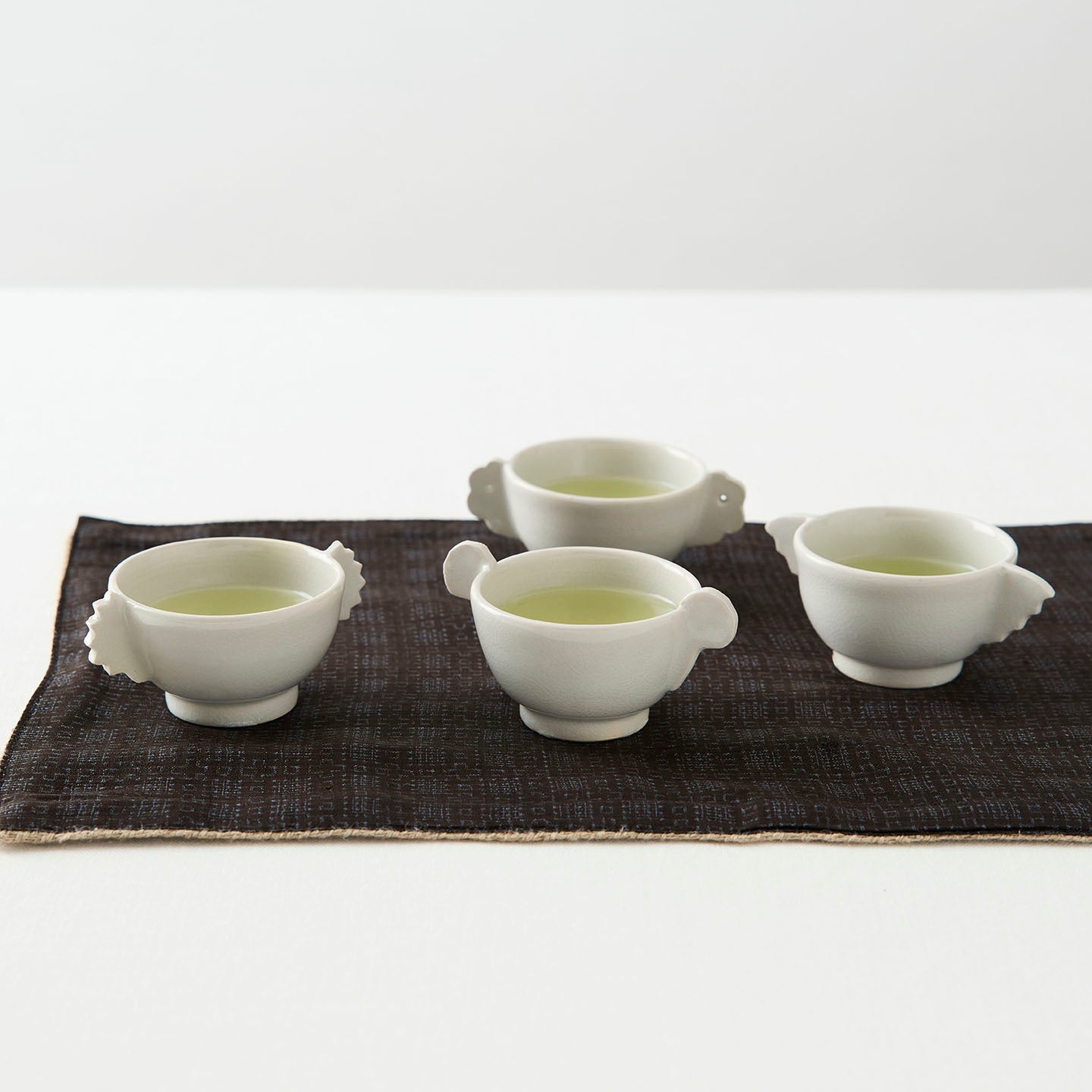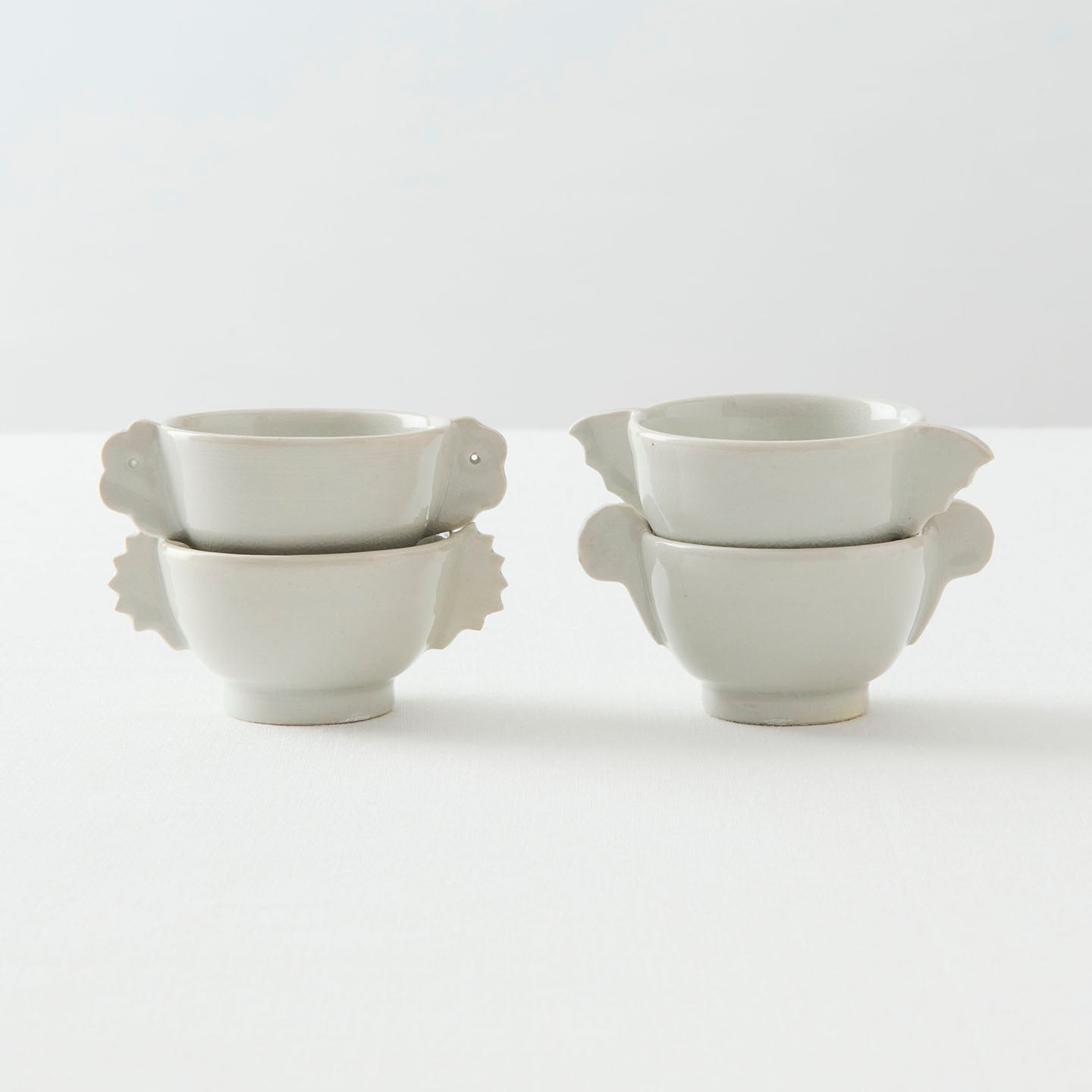 杯の両側に羽根状の把手が付いた「耳杯」と呼ばれる李朝の時代に作られた祭器。その佇まいに惚れ込む現代の作家も多く、自らの作風で表現しています。北井さんの手にかかると、まるで小動物のよう。4タイプあり、集めて並べたらなんだか楽しそうな会話が聞こえてきそうです。