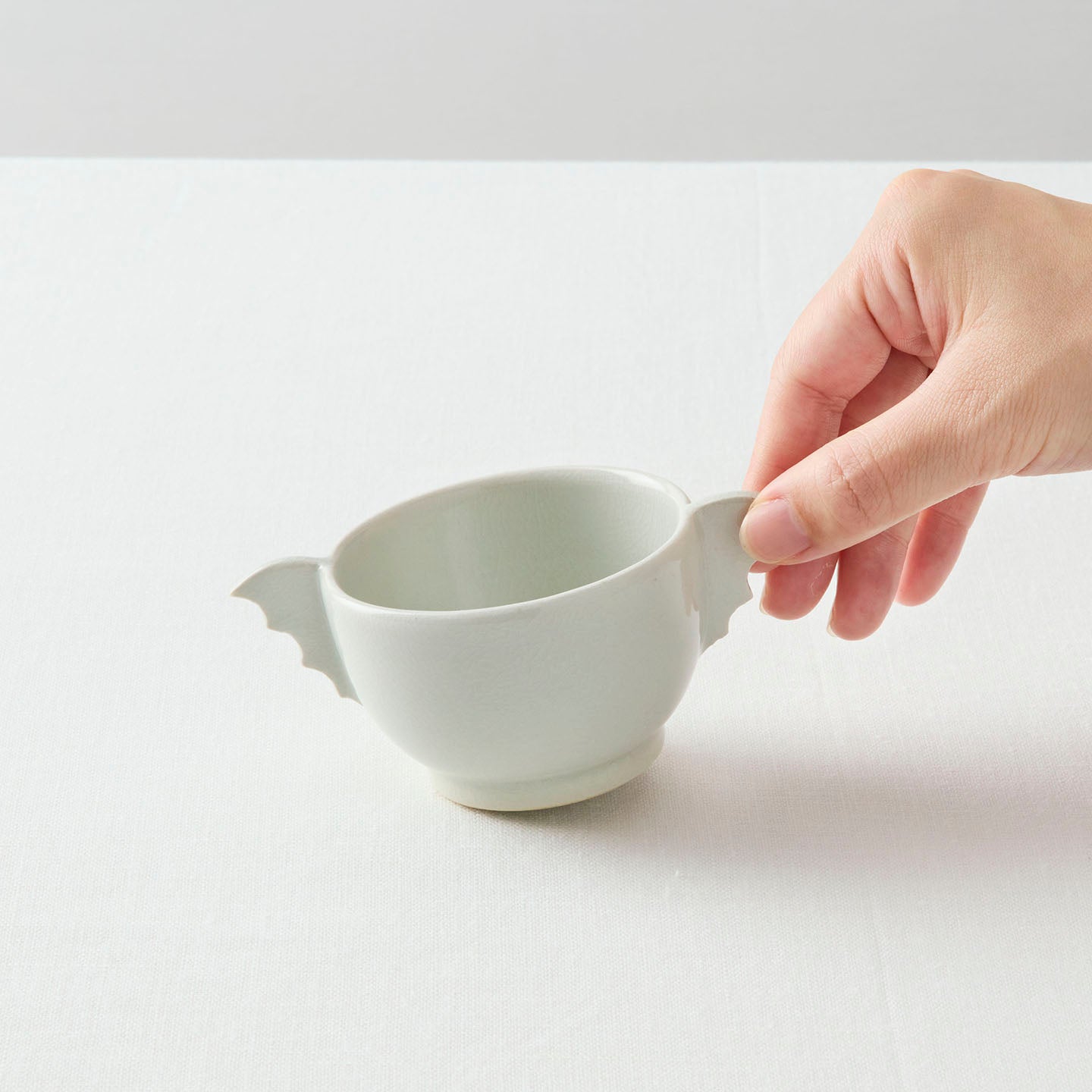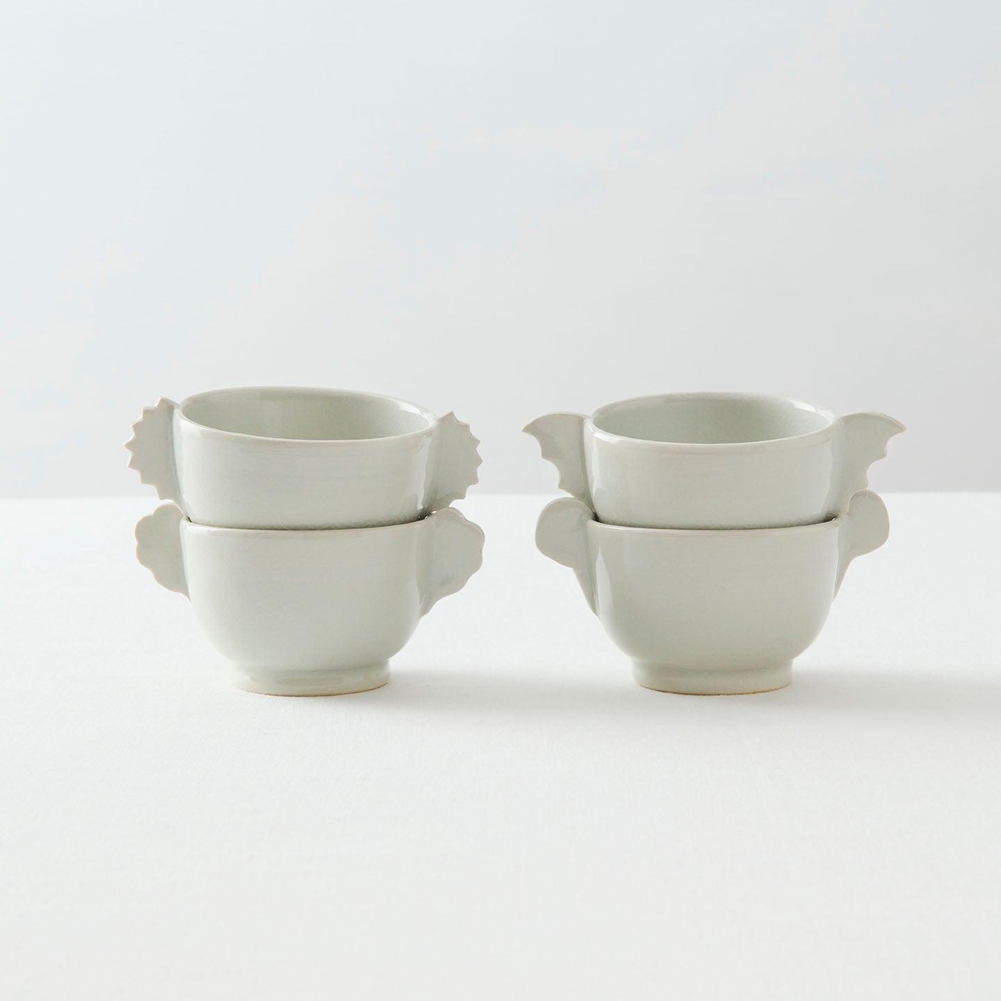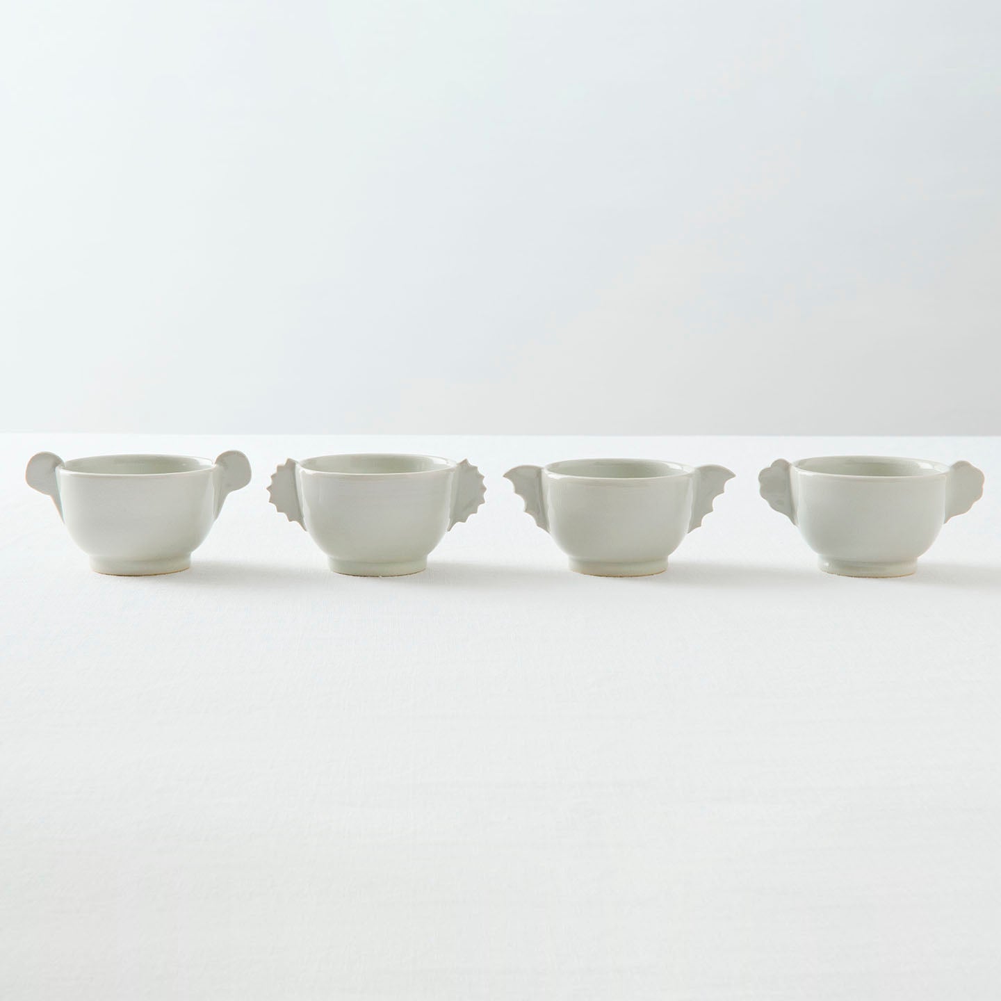 杯の両側に羽根状の把手が付いた「耳杯」と呼ばれる李朝の時代に作られた祭器。その佇まいに惚れ込む現代の作家も多く、自らの作風で表現しています。北井さんの手にかかると、まるで小動物のよう。4タイプあり、集めて並べたらなんだか楽しそうな会話が聞こえてきそうです。