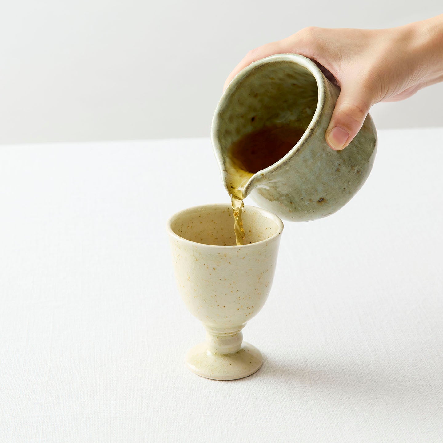 酒匂さんもお茶がお好きとうかがいましたが、今回取り扱う「ゴブレット」「蕎麦猪口」「灰白蓋椀」「灰白花湯呑」「灰白片口」に合わせるなら、それぞれどんな種類のお茶でしょう。