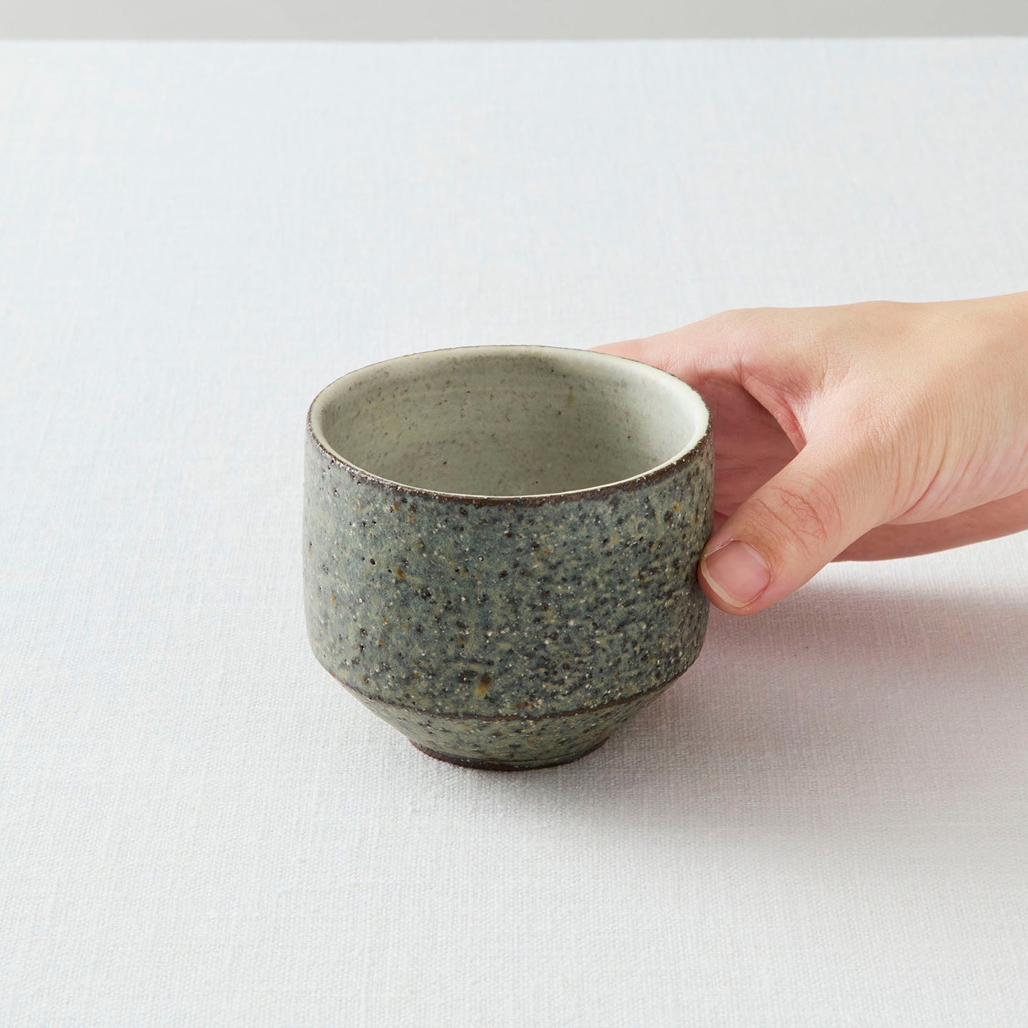 外側をグリーングレー、内側を白っぽく仕上げているのでそのコントラストが美しく、淹れたお茶の色を楽しむことができるのもポイント。