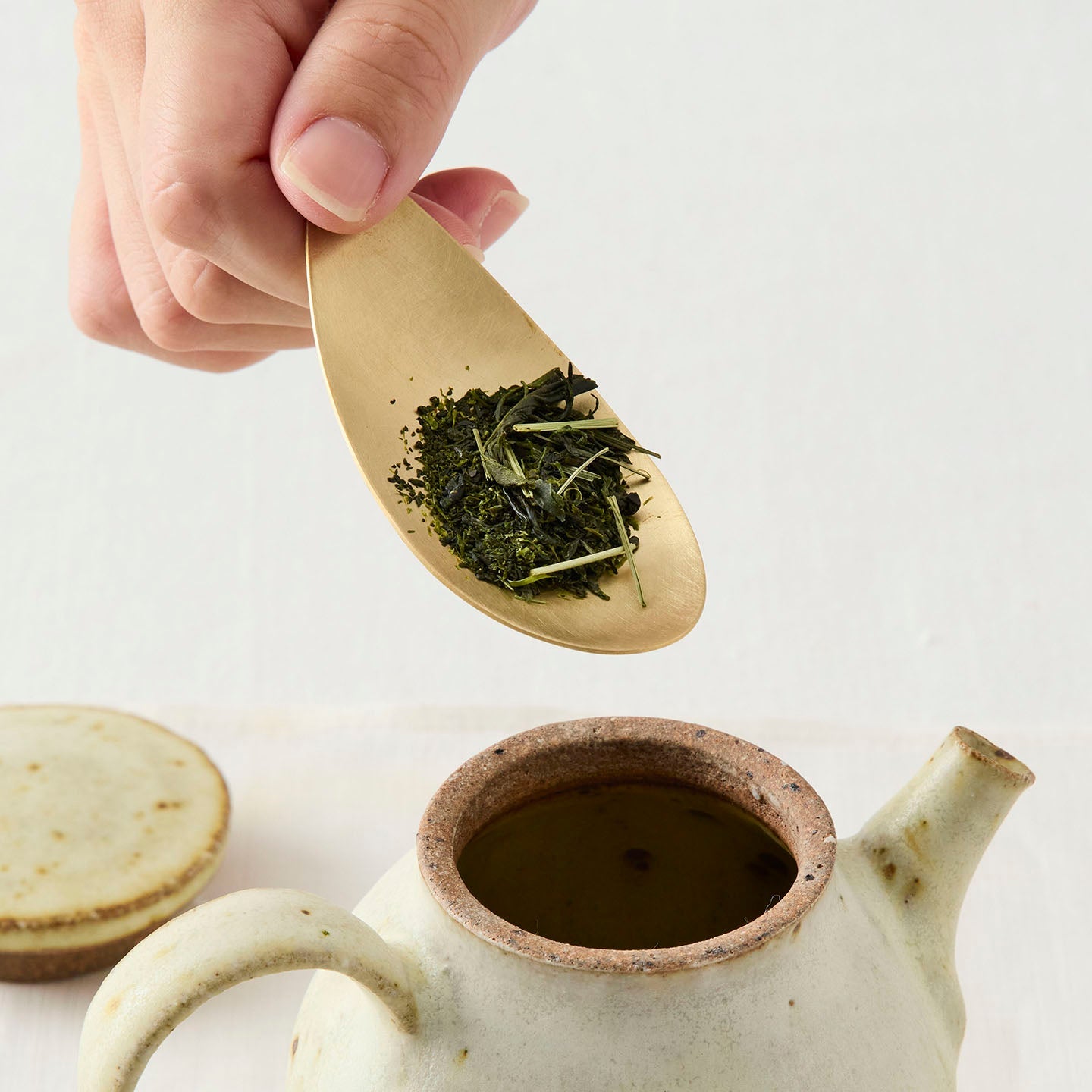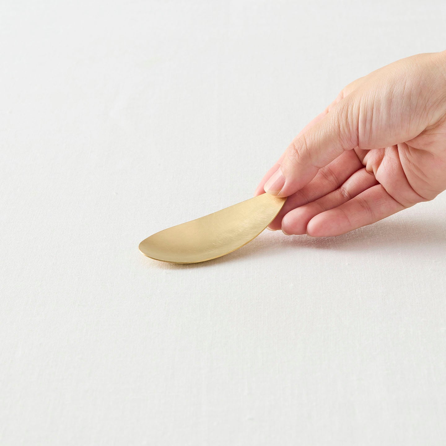 お茶を入れる時に欠かせない茶匙は、所作が美しくなるものを選びたいです。須原さんの茶匙は、繊細で絶妙な曲線が魅力的。卵のような、落ち葉のような、自然物から感じる柔らかな形が、金属で表現されている面白さもあります。