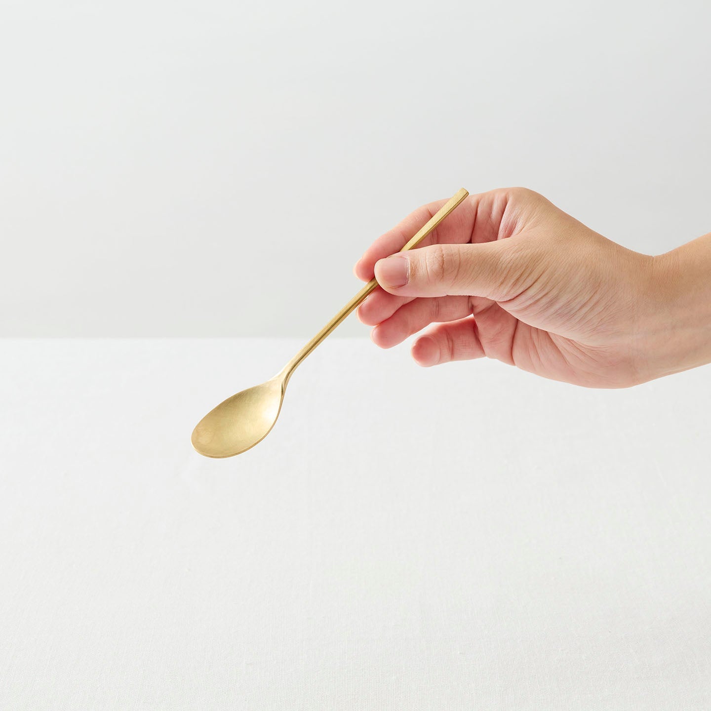 全長145mmの菓子匙は、作家によってひとつひとつ丁寧に手作業で作られています。滑らかでしなやかな流線のライン、シンプルな造形の中に宿る美しさが魅力的です。和洋問わず、甘味をいただく時間にささやかに寄り添ってくれます。表面は上品な艶消し仕上げで、気分を上げてくれます。