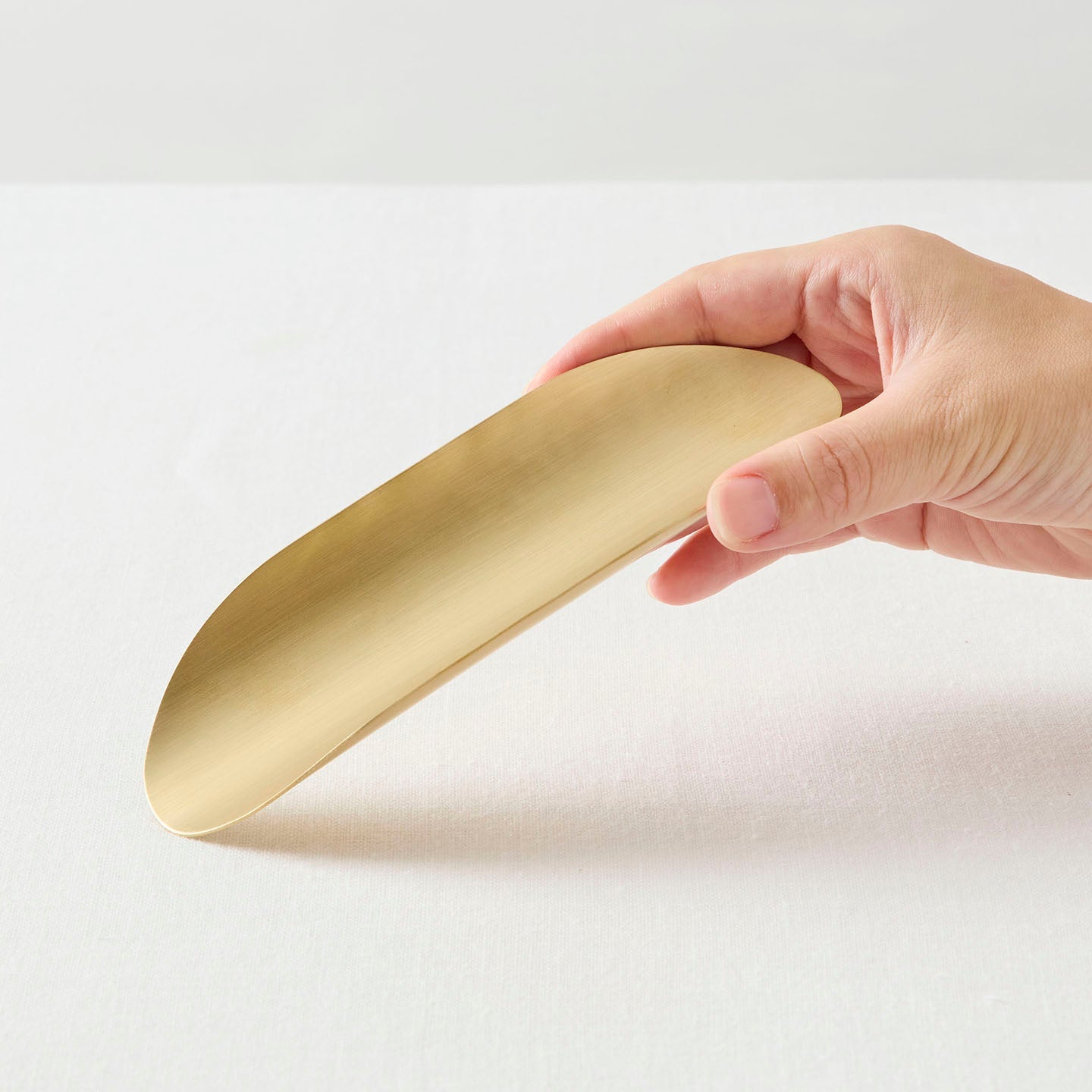 茶葉の存在を引き立てる須原さんの作る茶則は、真鍮の風合いで、茶葉が映えるように設計されています。