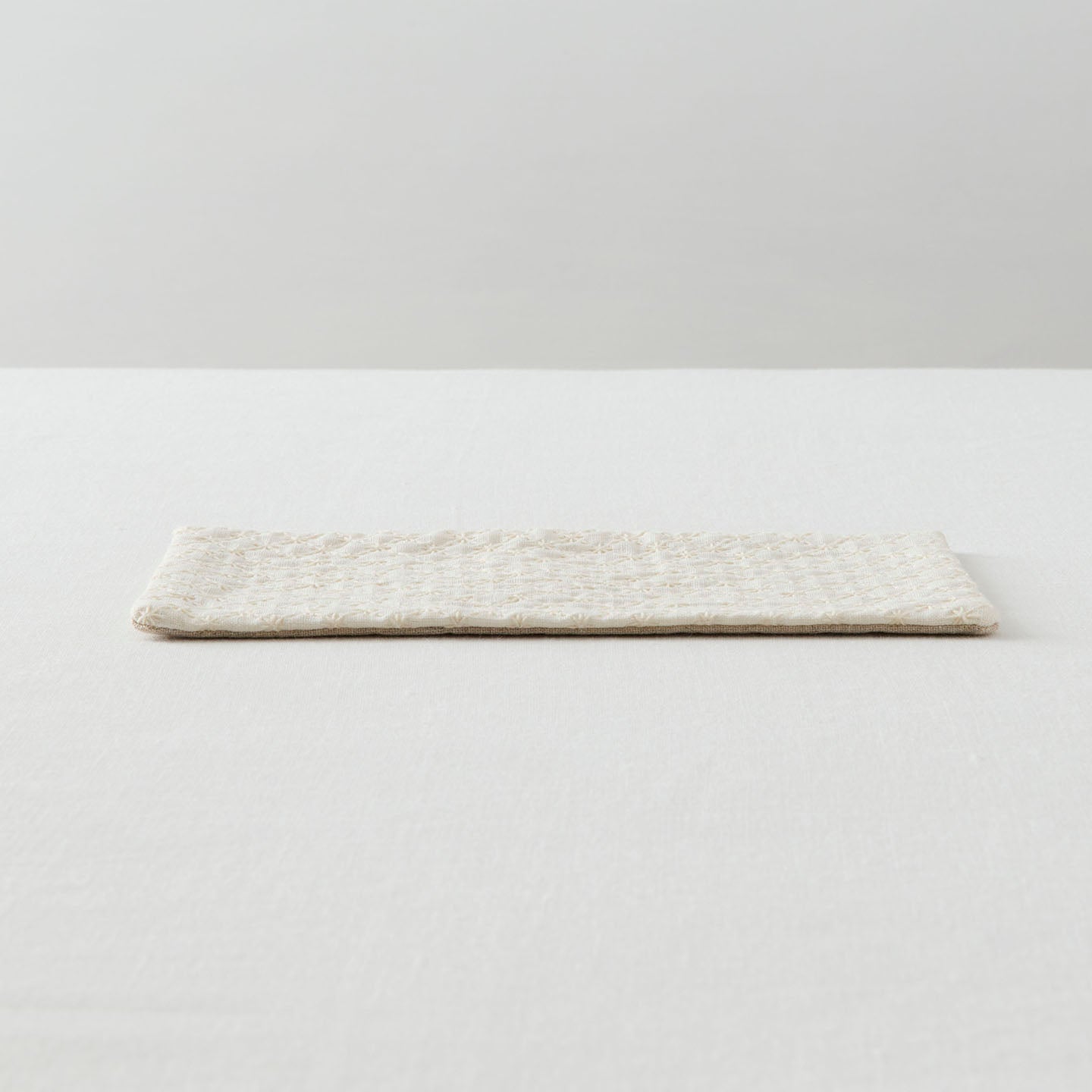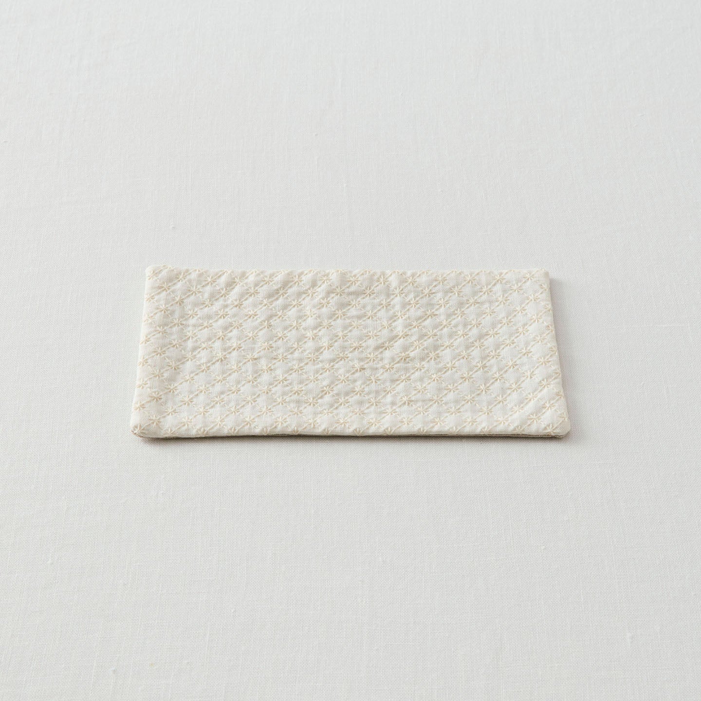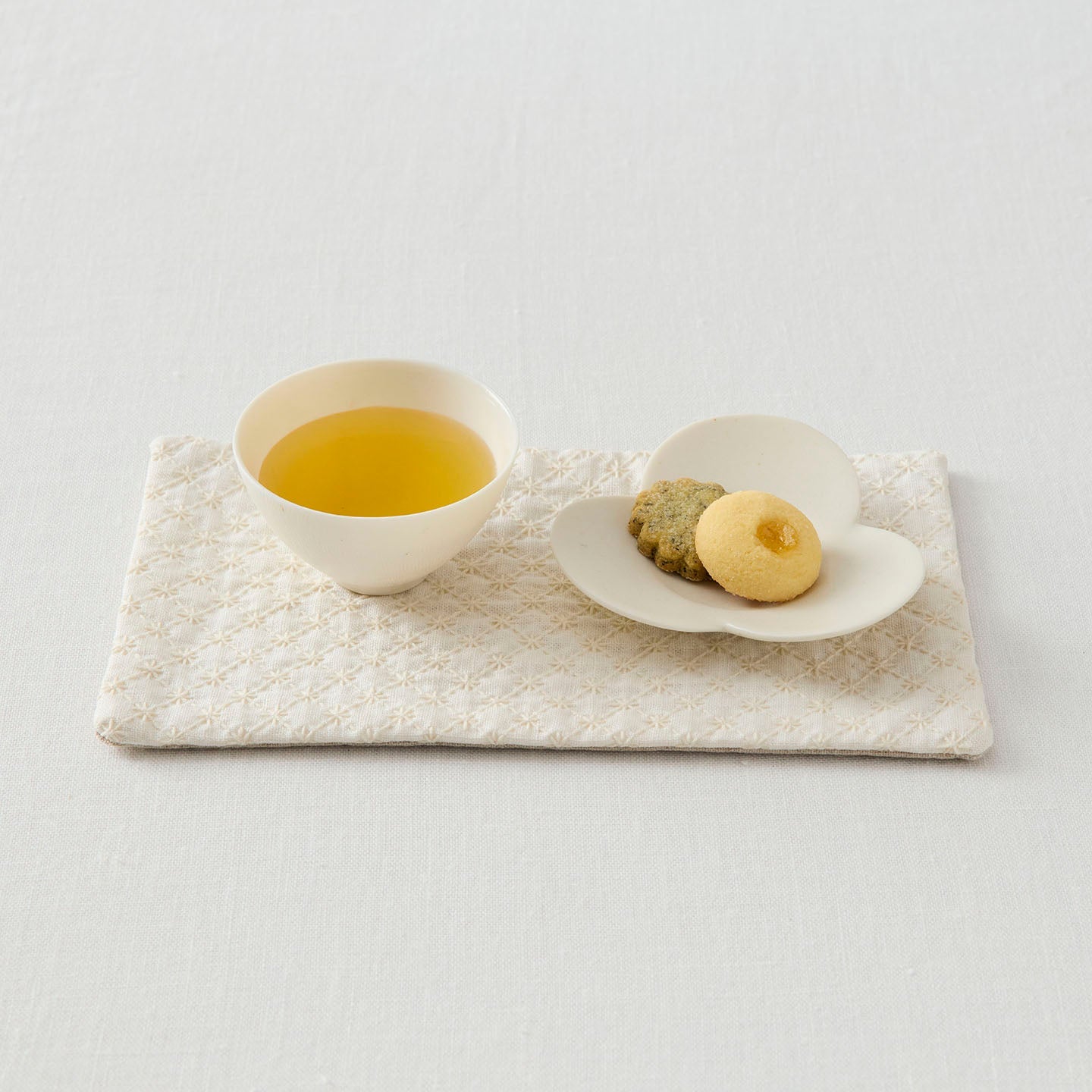 「コースター 白」と揃いで作っていただいたマットは、お菓子を一緒にのせてお使いいただけます。自分1人の時間にも、来客の時にもおもてなしできる一枚です。