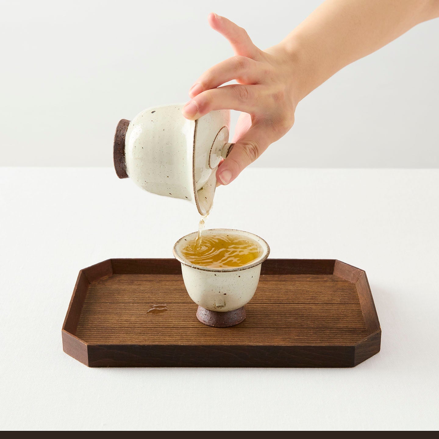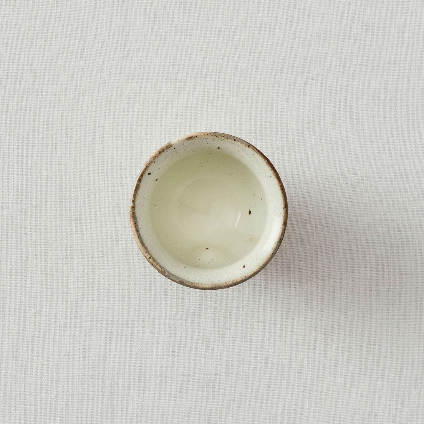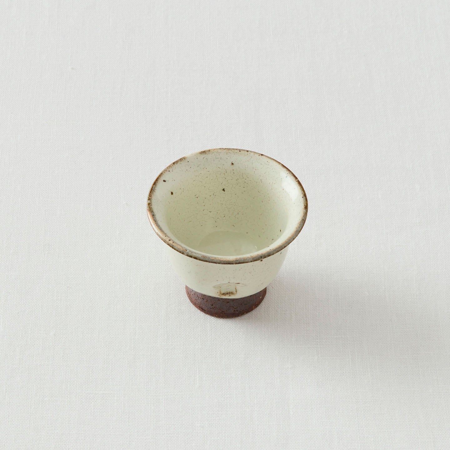 高さ5.5cmと小ぶりの小煎茶碗。煎茶の色が美しく映えるような穏やかな白色が魅力的です。ふちの部分に下唇にフィットする反りが施されていて、飲み心地もなめらかです。