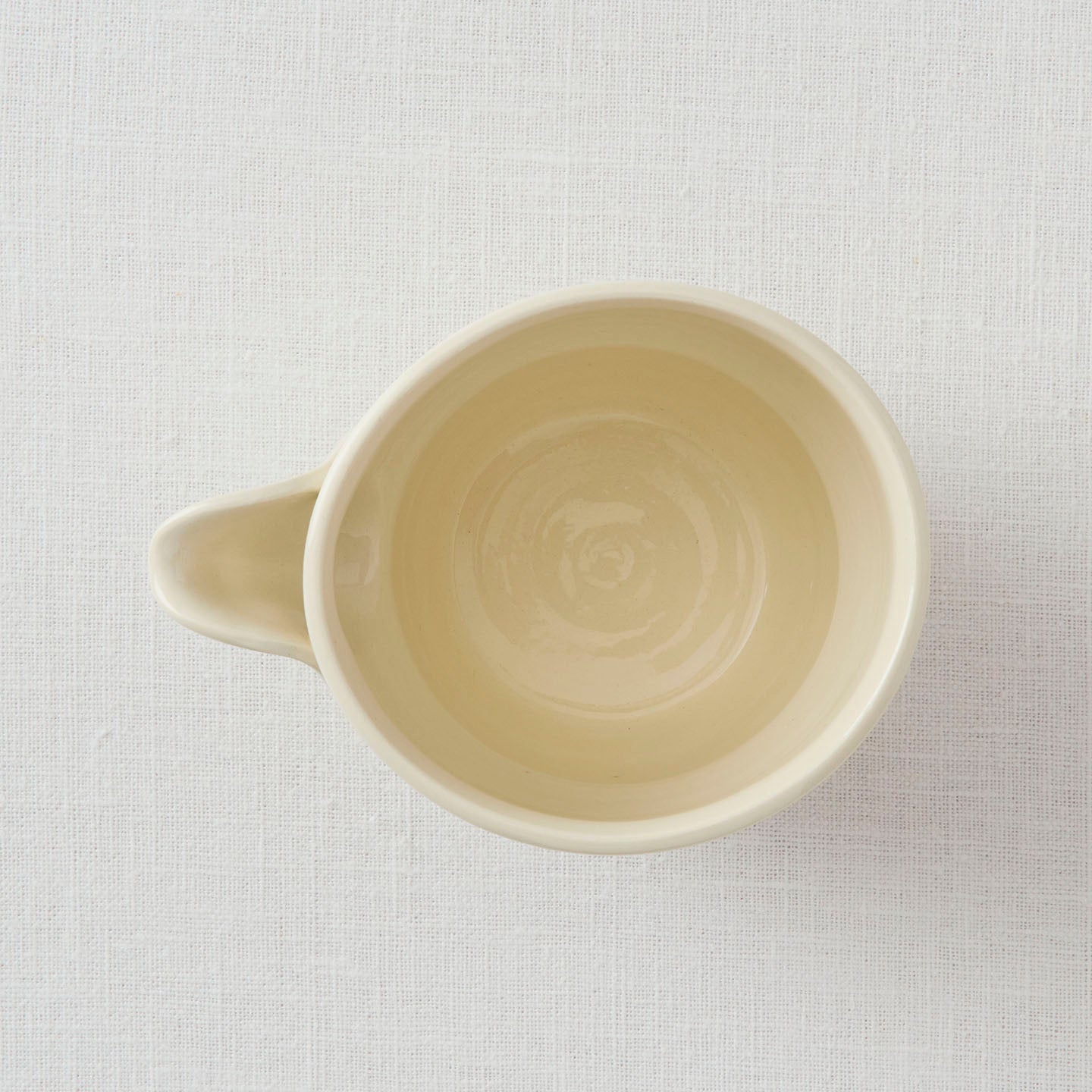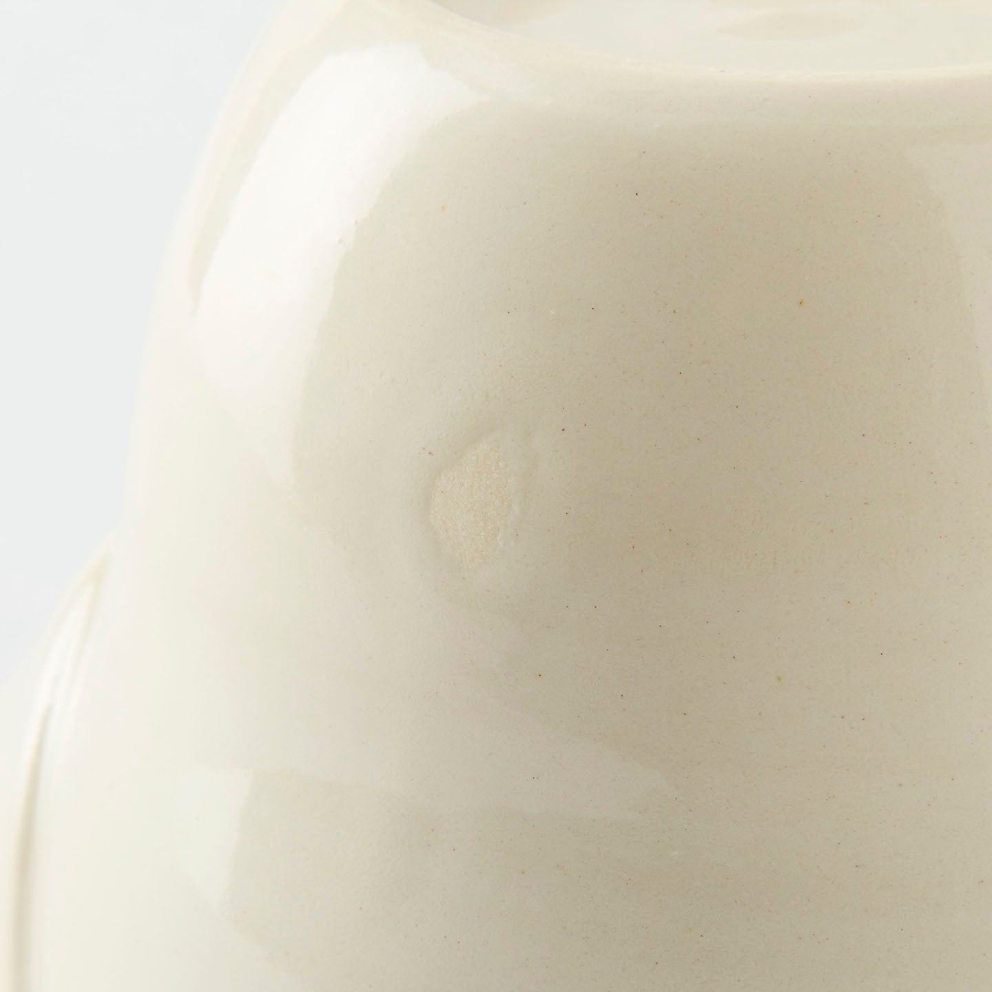 薄い円形の粘土を注ぎ口になるようにつけたデザインと、ほんのりとくびれたフォルム。やさしい線の揺らぎに心打たれます。