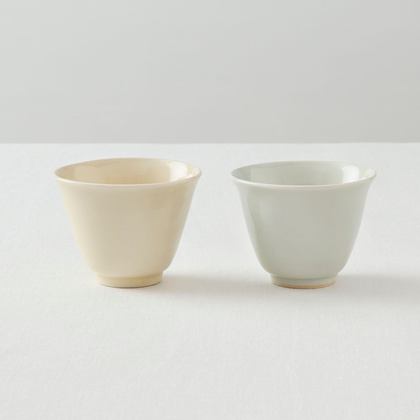 白磁の器は、凛とした上品な雰囲気。すっきりとした緑茶や中国茶がよく合いそうです。一方、クリーム色はあたたかみが感じられ、ほうじ茶などが似合いそう。もちろん、どちらの器で何を飲んでも自由ですが、同じお茶でも器で気分が変わりそうです。