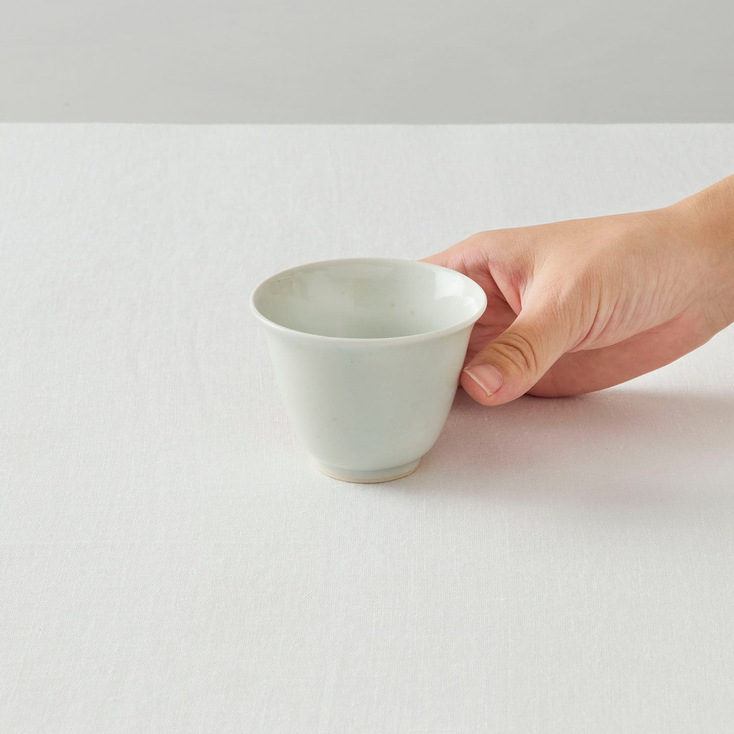 「端反り(はたぞり)」とは、口の先が外側に沿っている形のこと。石田さんの「端反り湯呑み」は、胴から高台にかけてしなやかなカーブを描き、手にフィットするシルエット。高さ7cmで、すらりとした佇まいです。