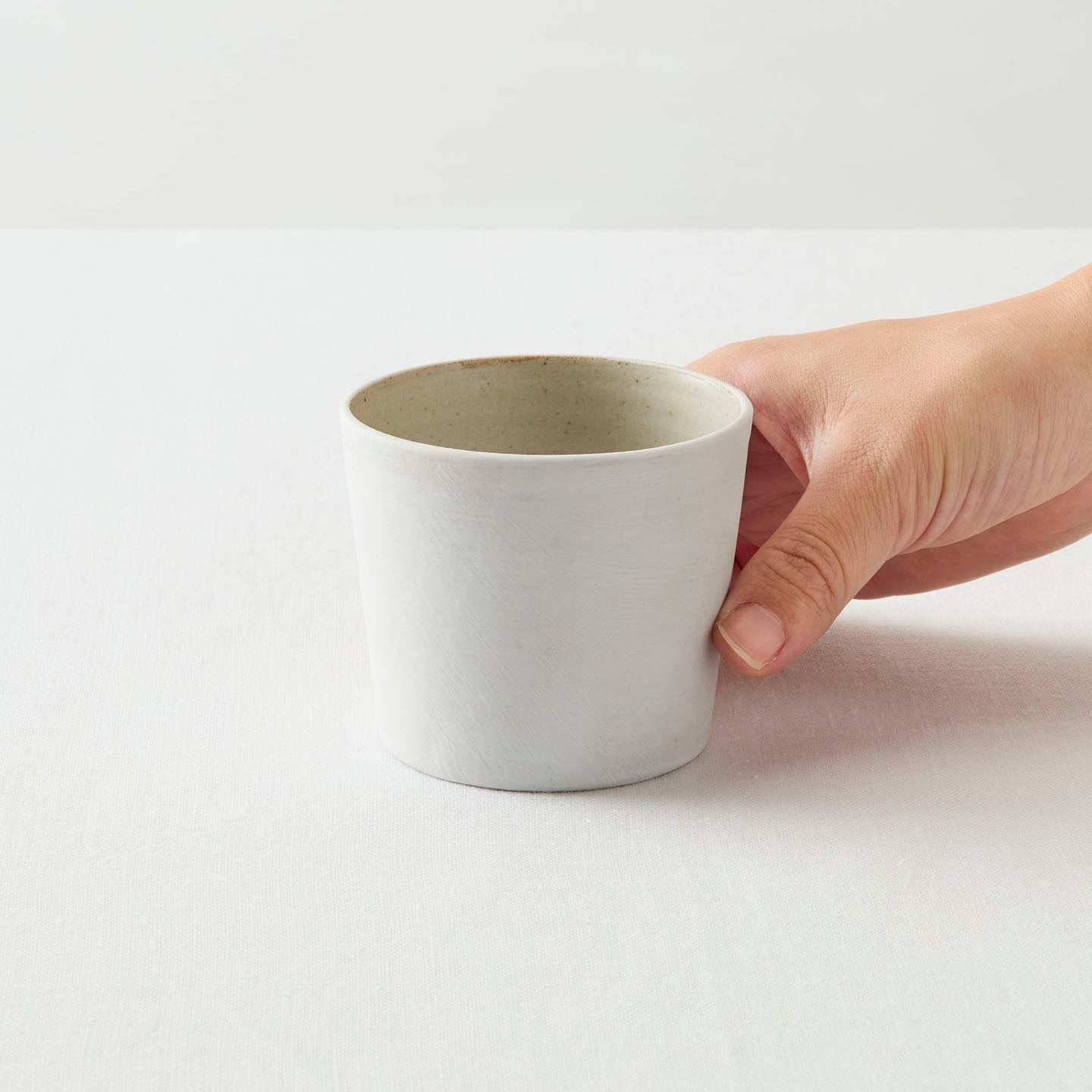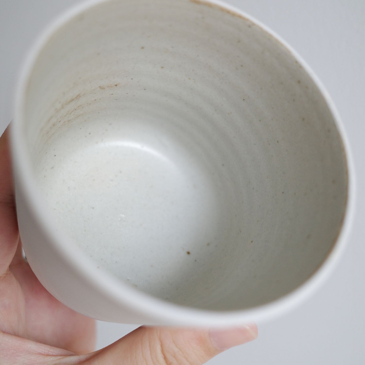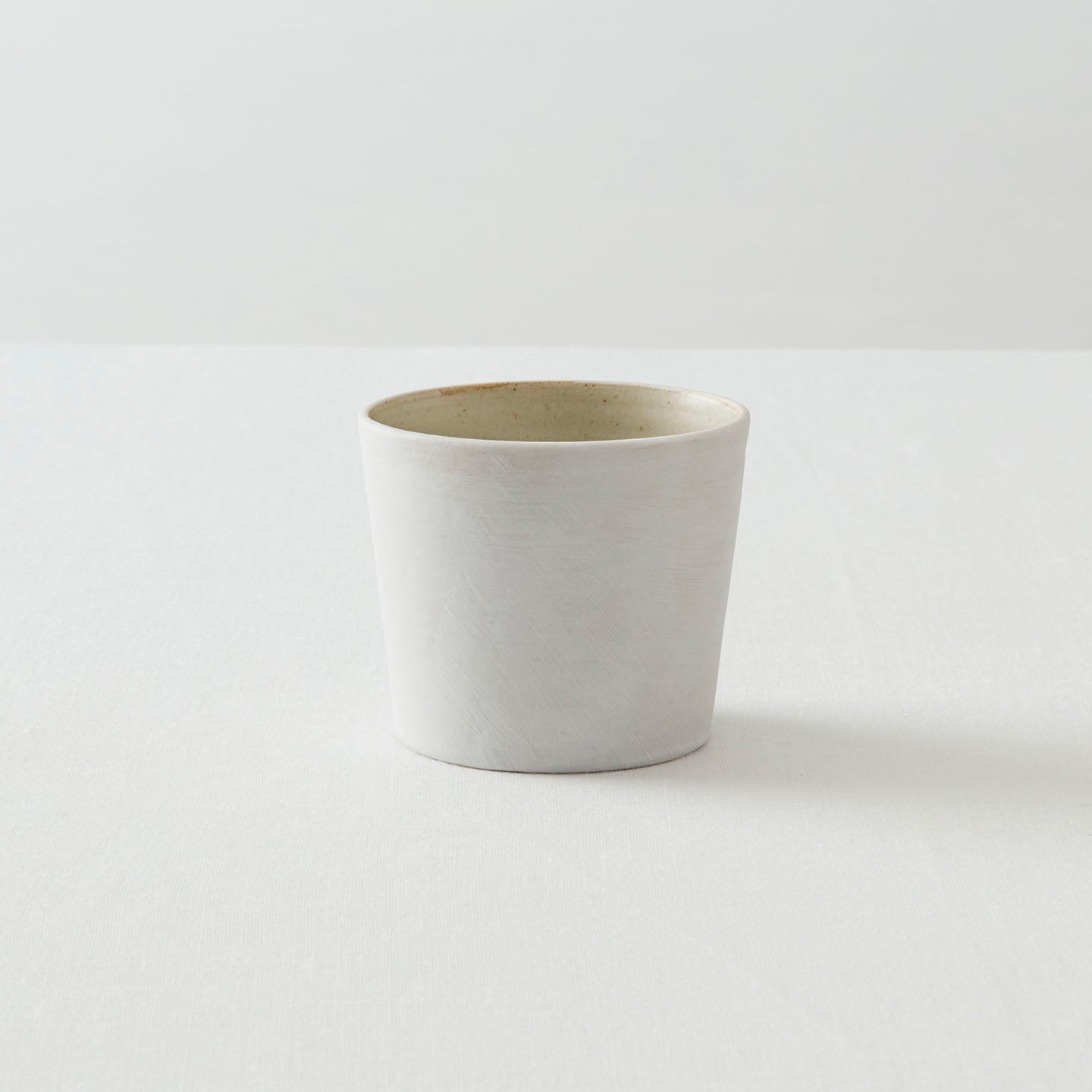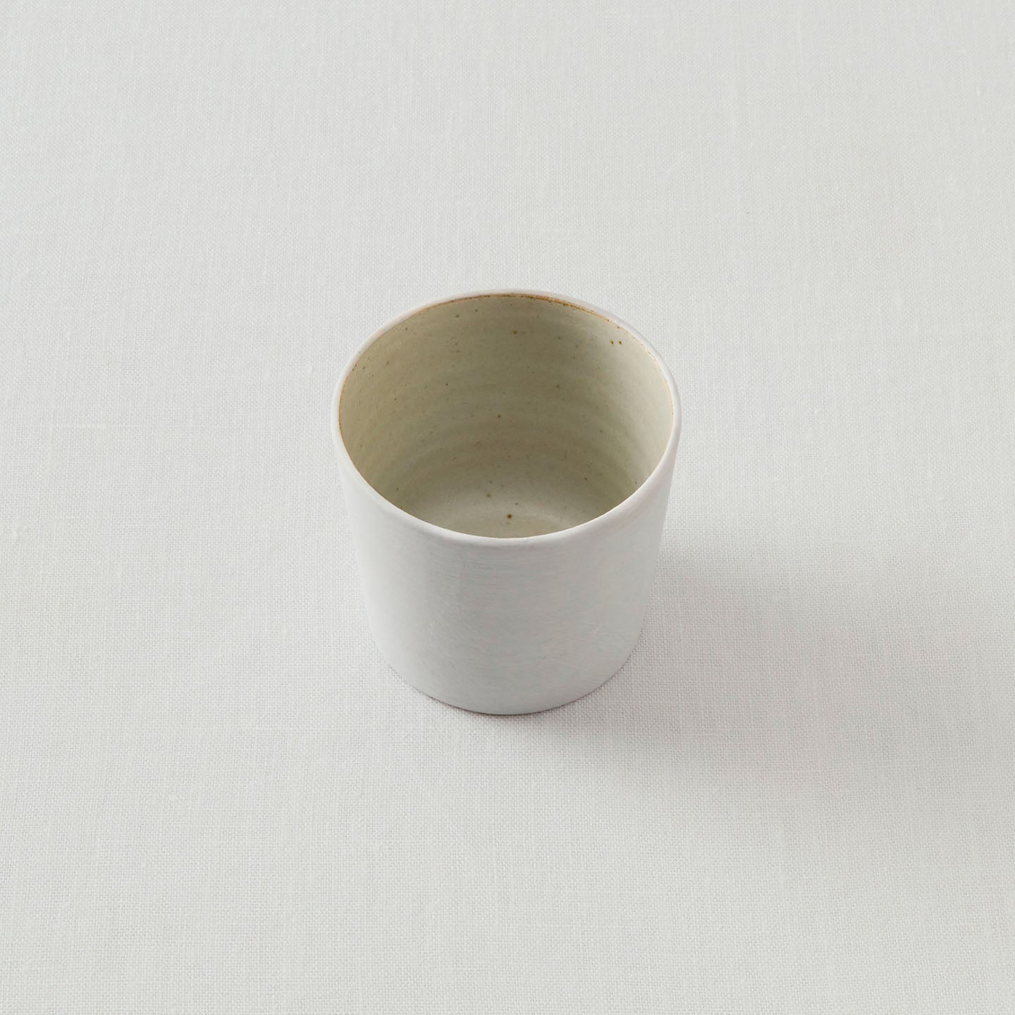 児玉さんの作る蕎麦猪口は、スタンダードを突き詰めたスタイル。焼き物の美しさの原点に、私たちを立ち還らせてくれるような気がします。カップの内側には灰釉が施され、洗いやすい仕様になっています。