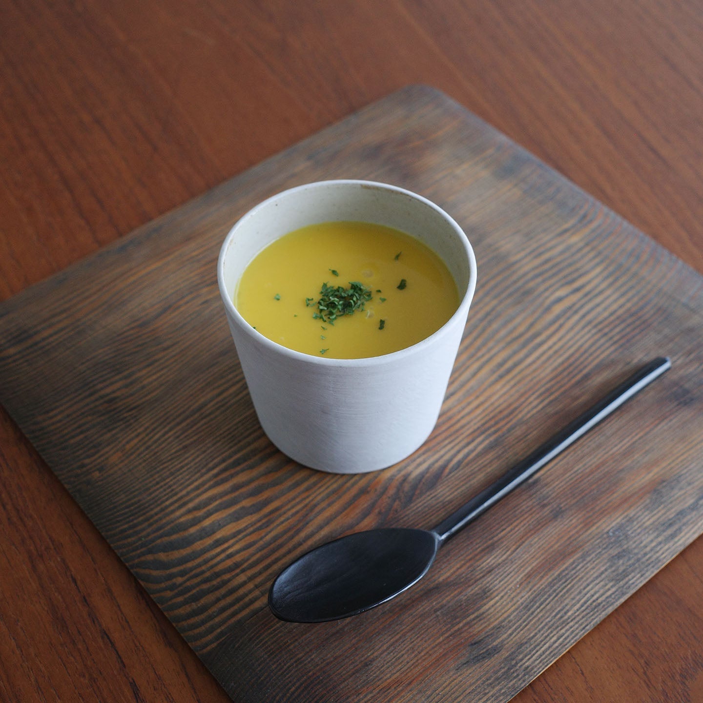 シンプルでモダンな佇まいがとても素敵です。口に当てたときの感触がよく、飲みやすい器だと感じました。お茶以外にもハーブティーを入れると香りが立って、より美味しく感じます。