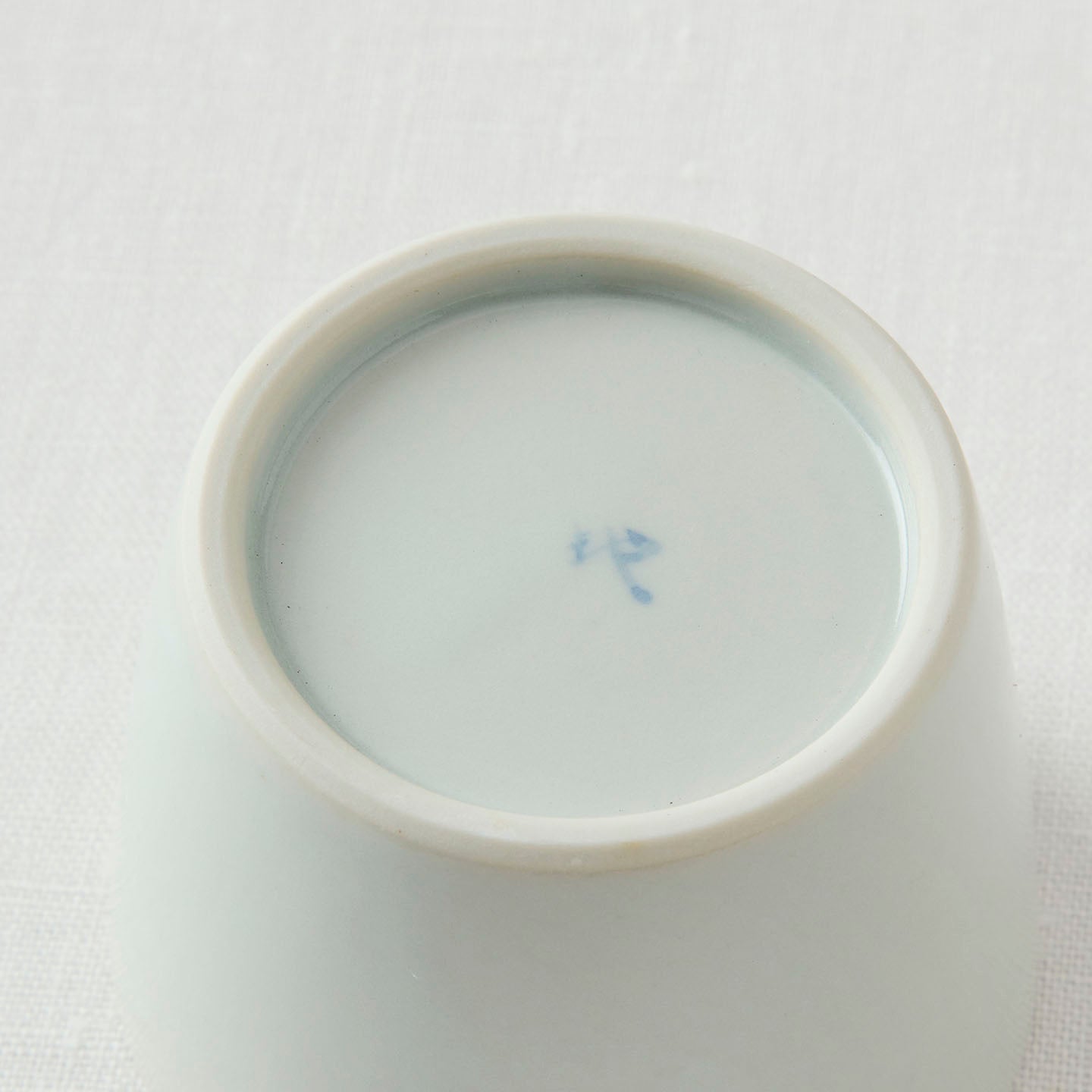 静けさを感じる凛とした佇まいの薄手の「蕎麦猪口」。わずかに見える釉薬の流れや、ポツリと浮かぶ黒点が、まるでアンティークのようでもあります。