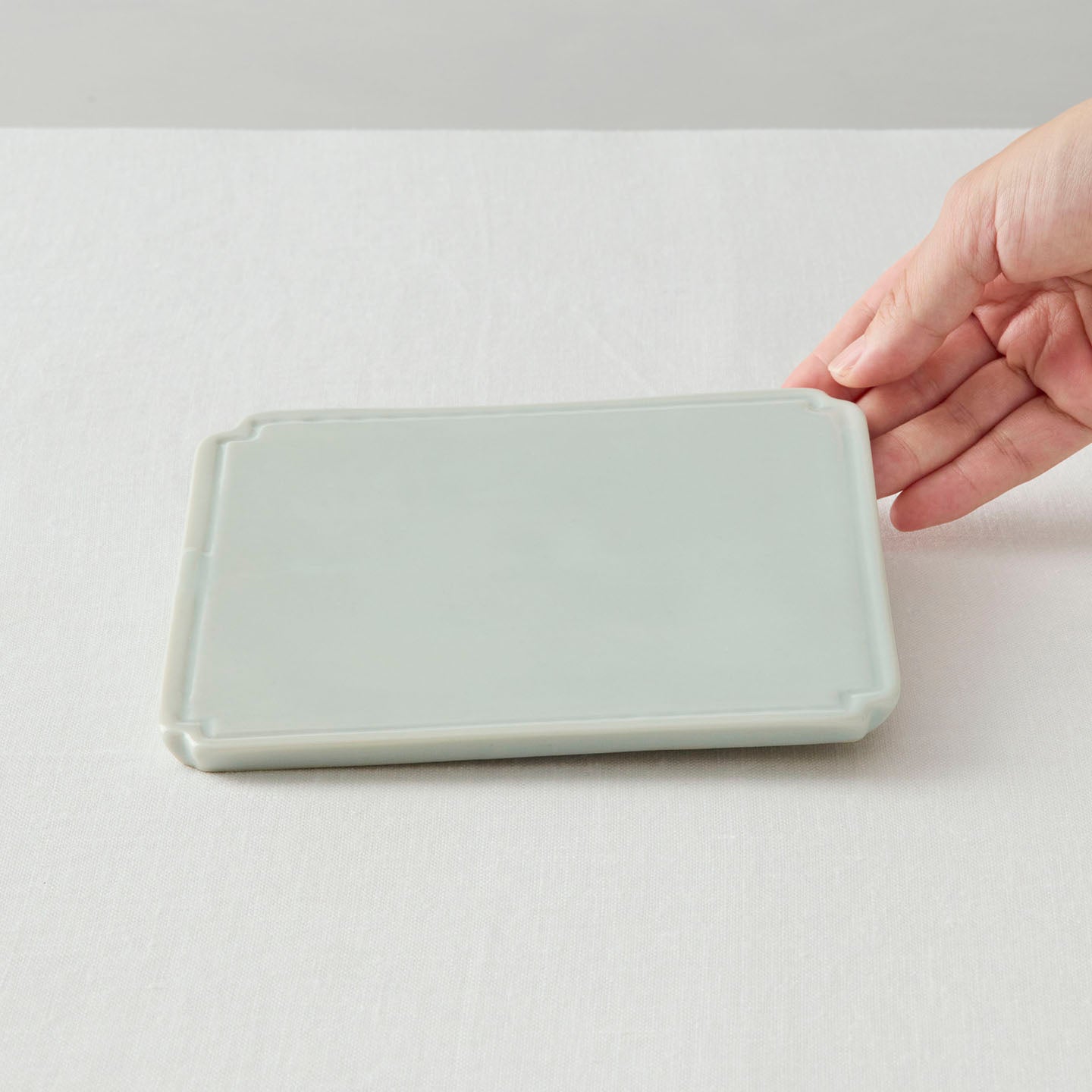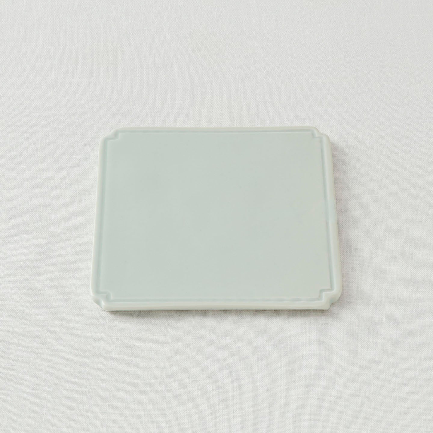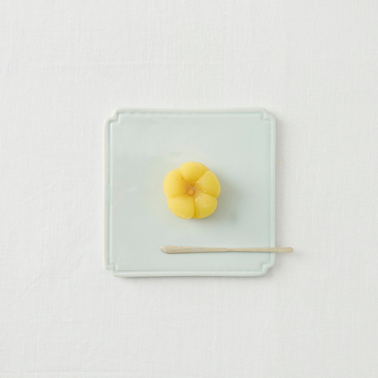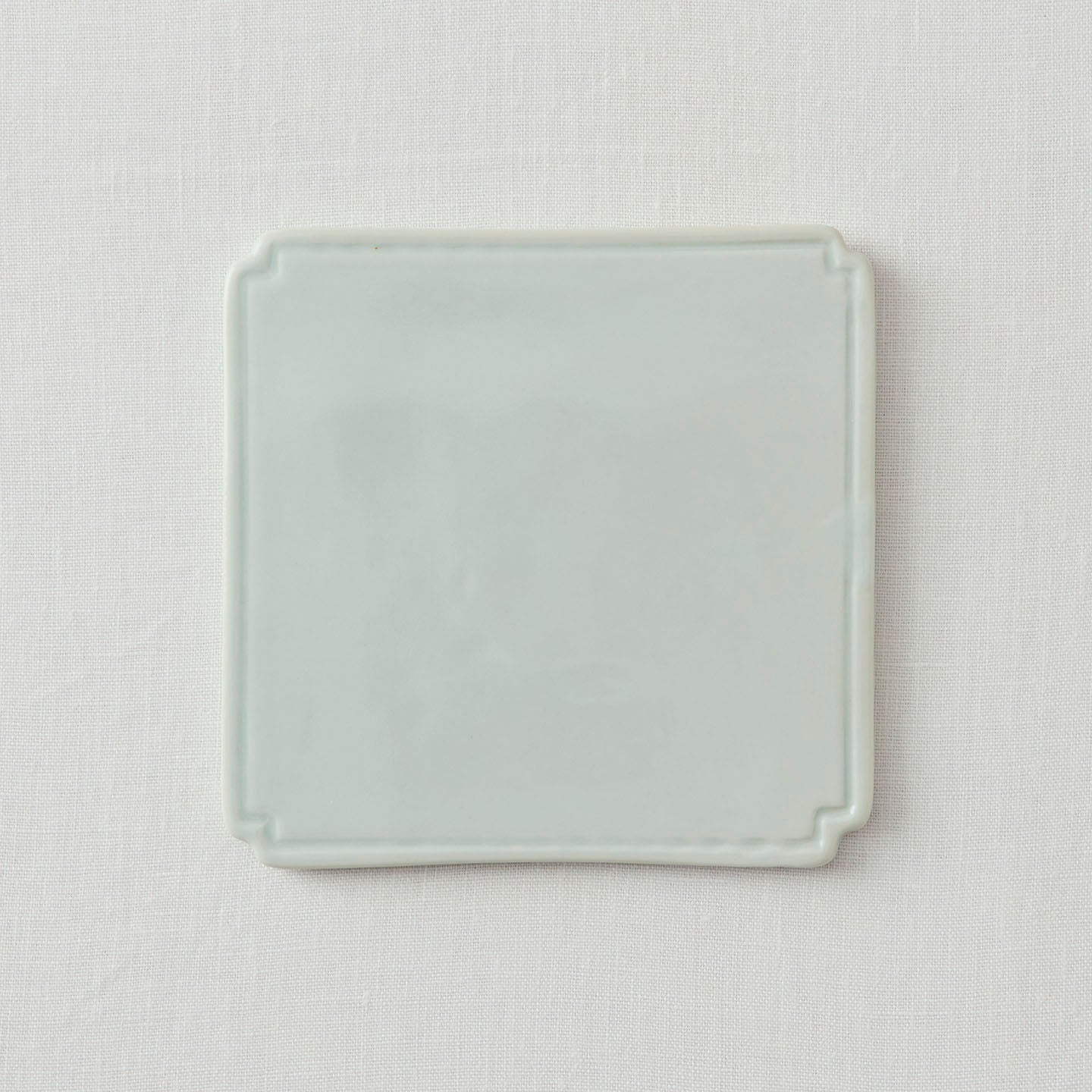 お茶菓子をひとつ置くだけでも画になる、約15cm角の「白磁板皿」。