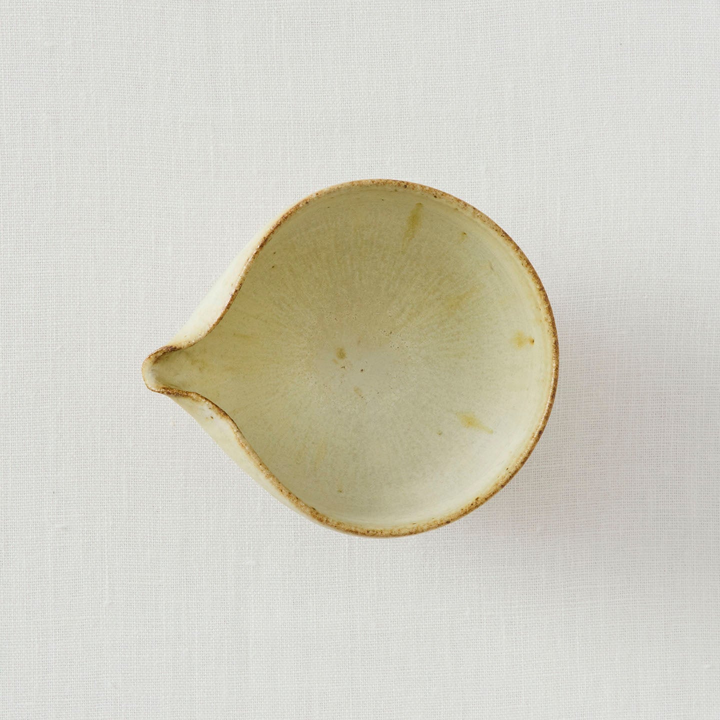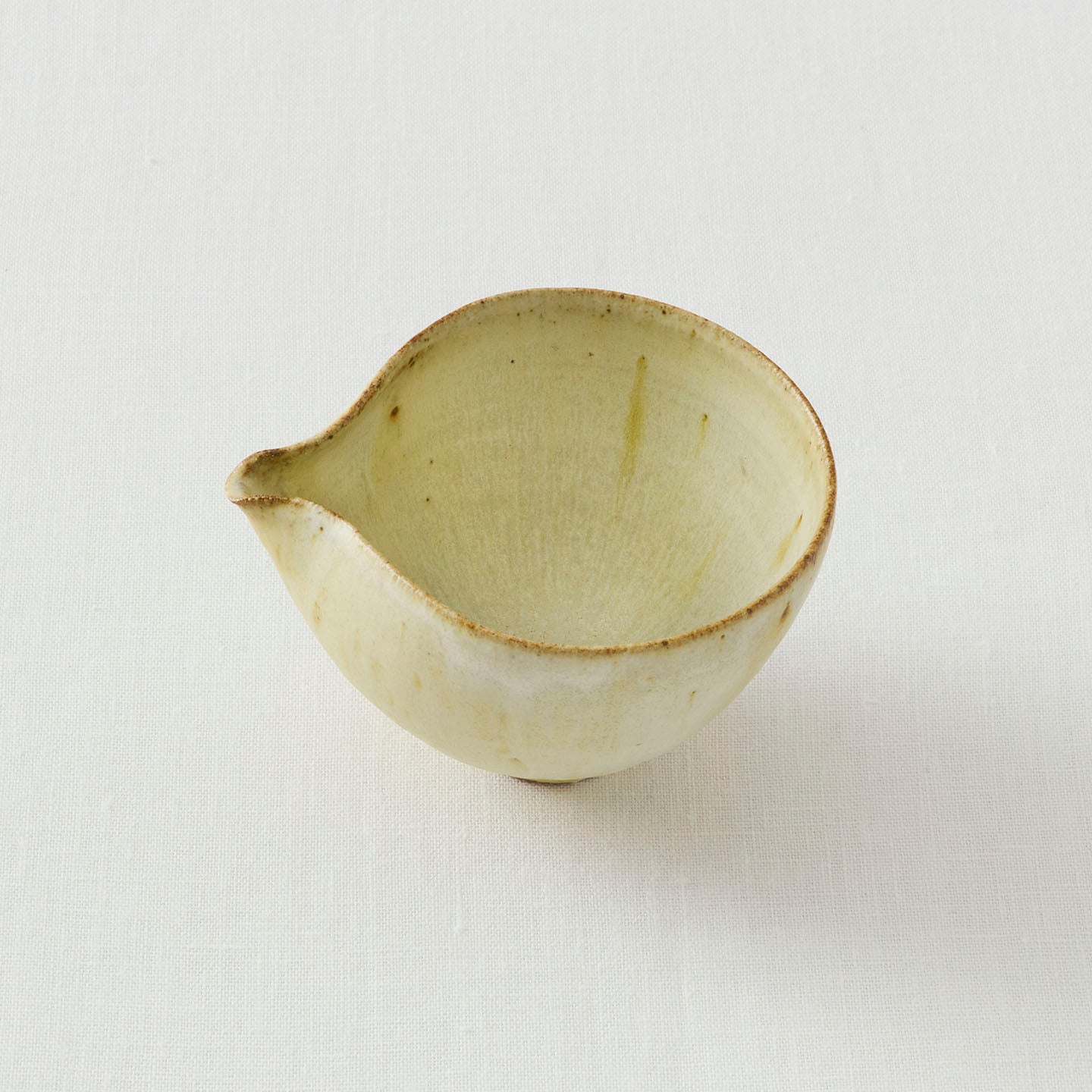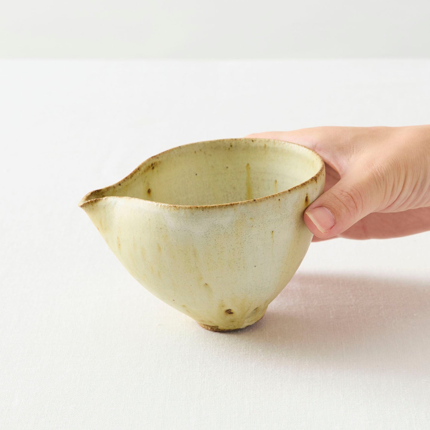 「益子の土」が魅せる素朴さと、流れる釉薬が描く偶然の美しさが印象的な小野さんの作品から、今回は「片口」をご紹介します。