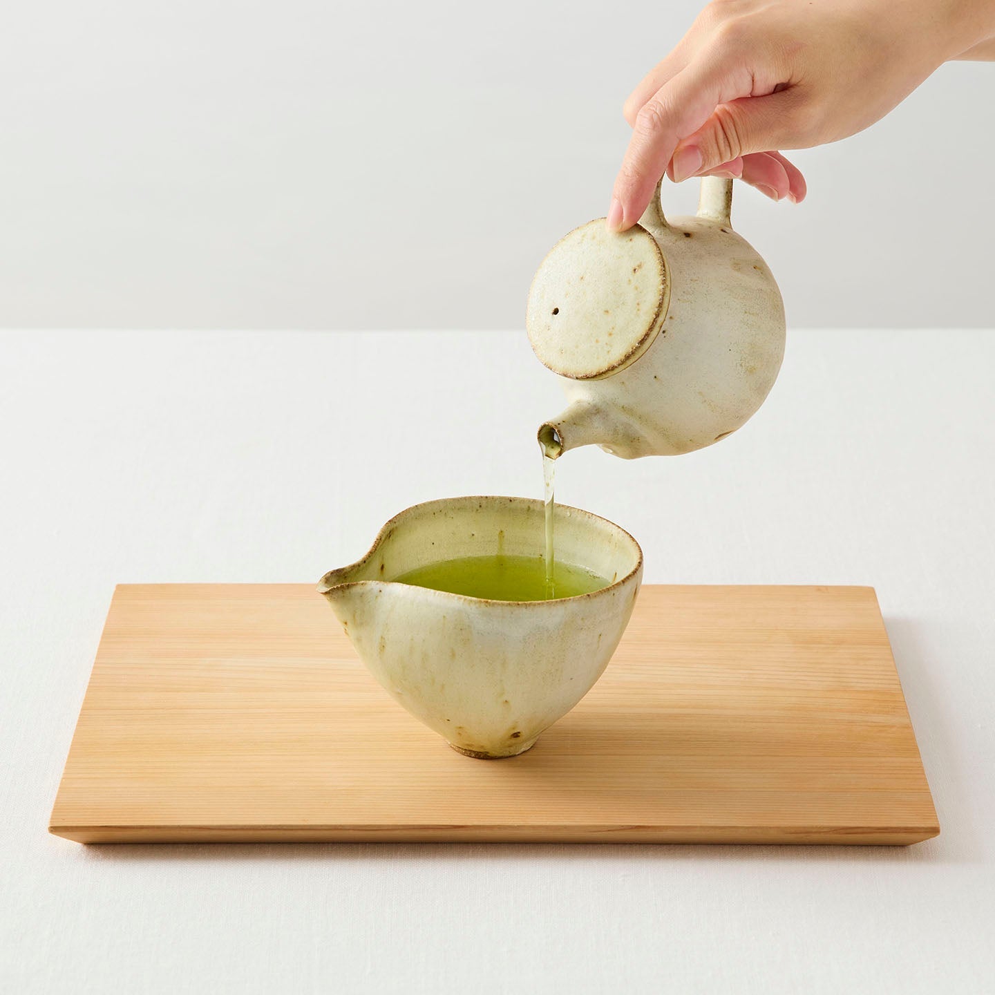 「片口」という名前から酒器を想像するかもしれませんが、煎茶を注ぎ分けるときに、濃さを均一にするために移す「茶海」として使うことができます。この一手間で煎茶のおいしさがより引き立ちます。