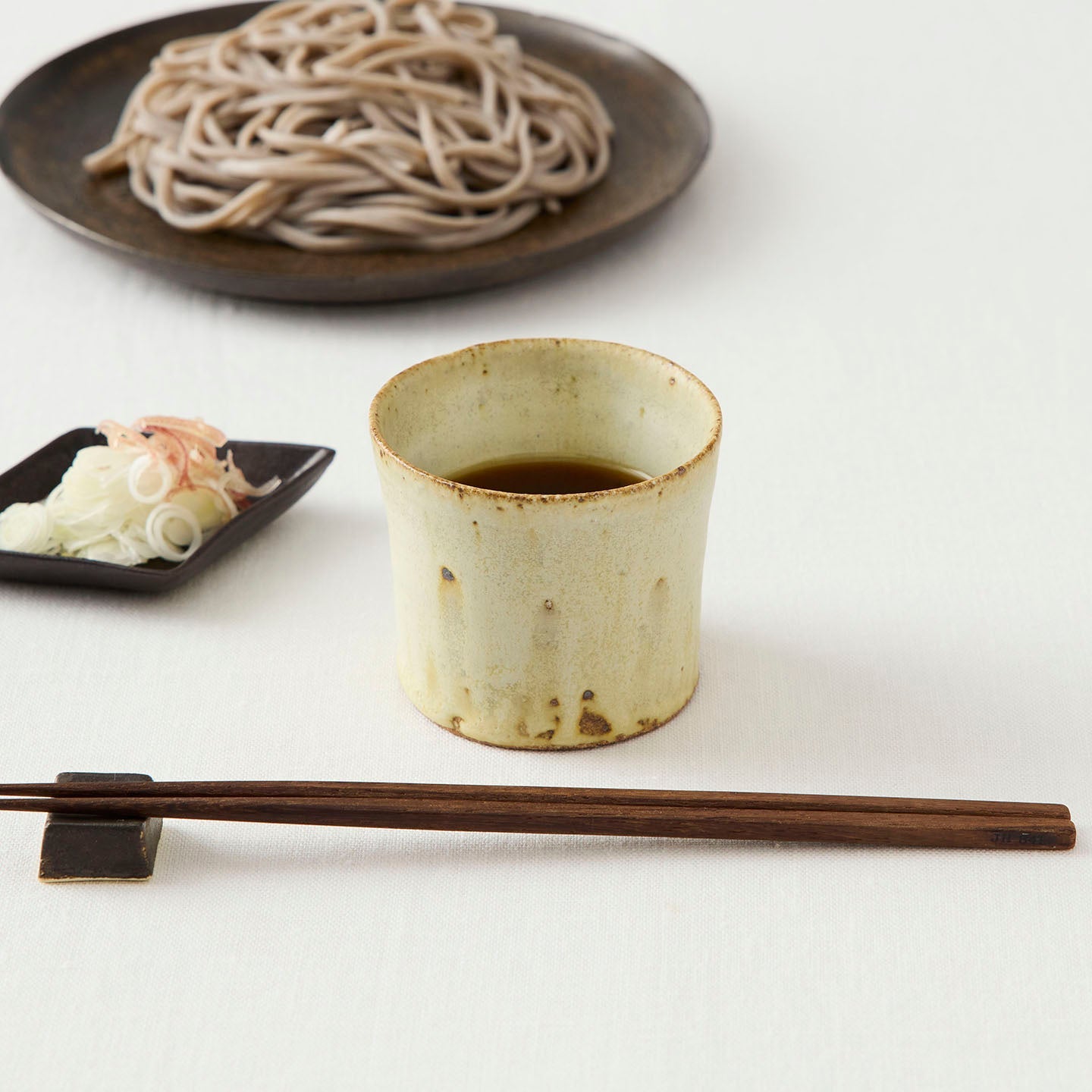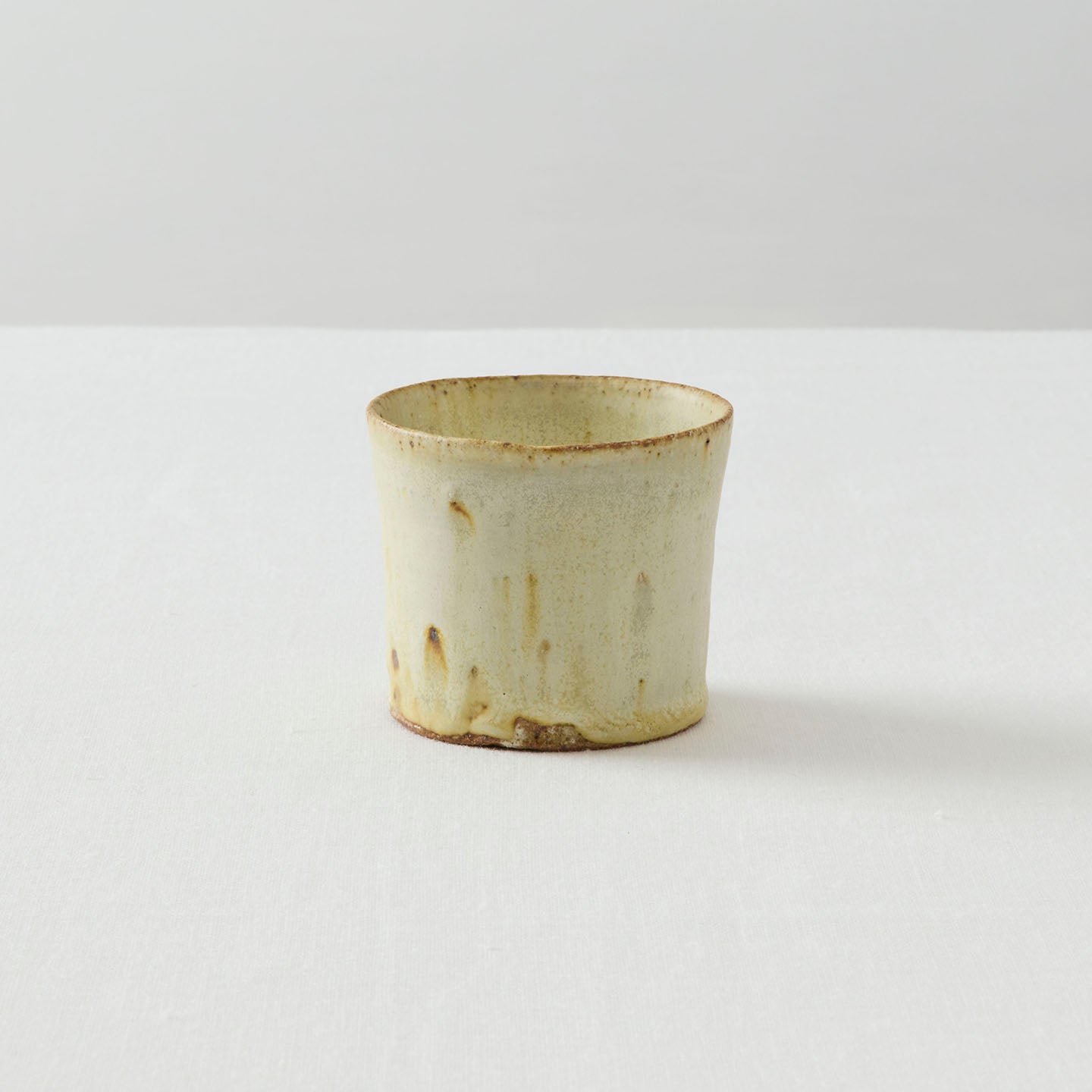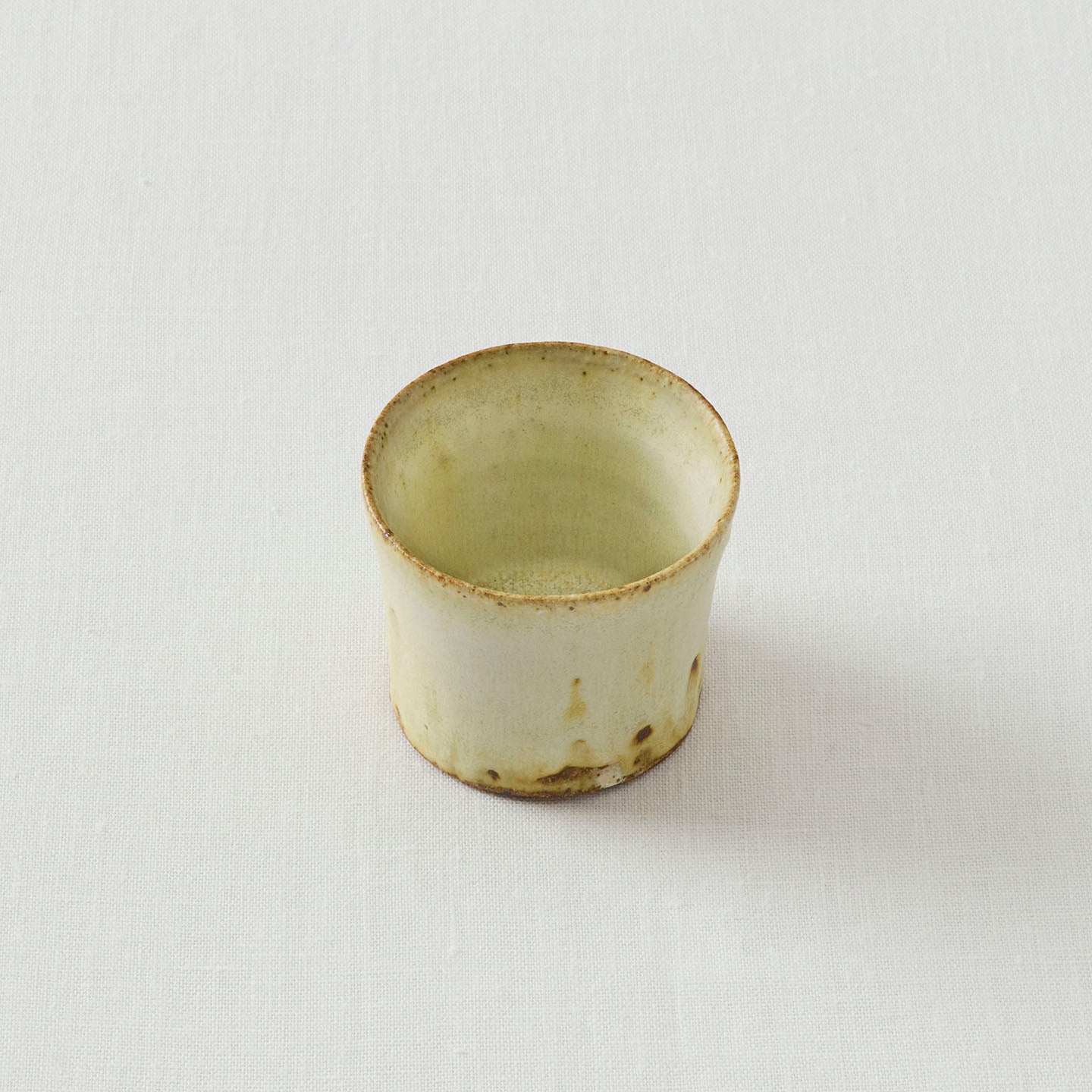「益子の土」が魅せる素朴さと、流れる釉薬が描く偶然の美しさが印象的な小野さんの作品から、今回は「蕎麦猪口」をご紹介します。