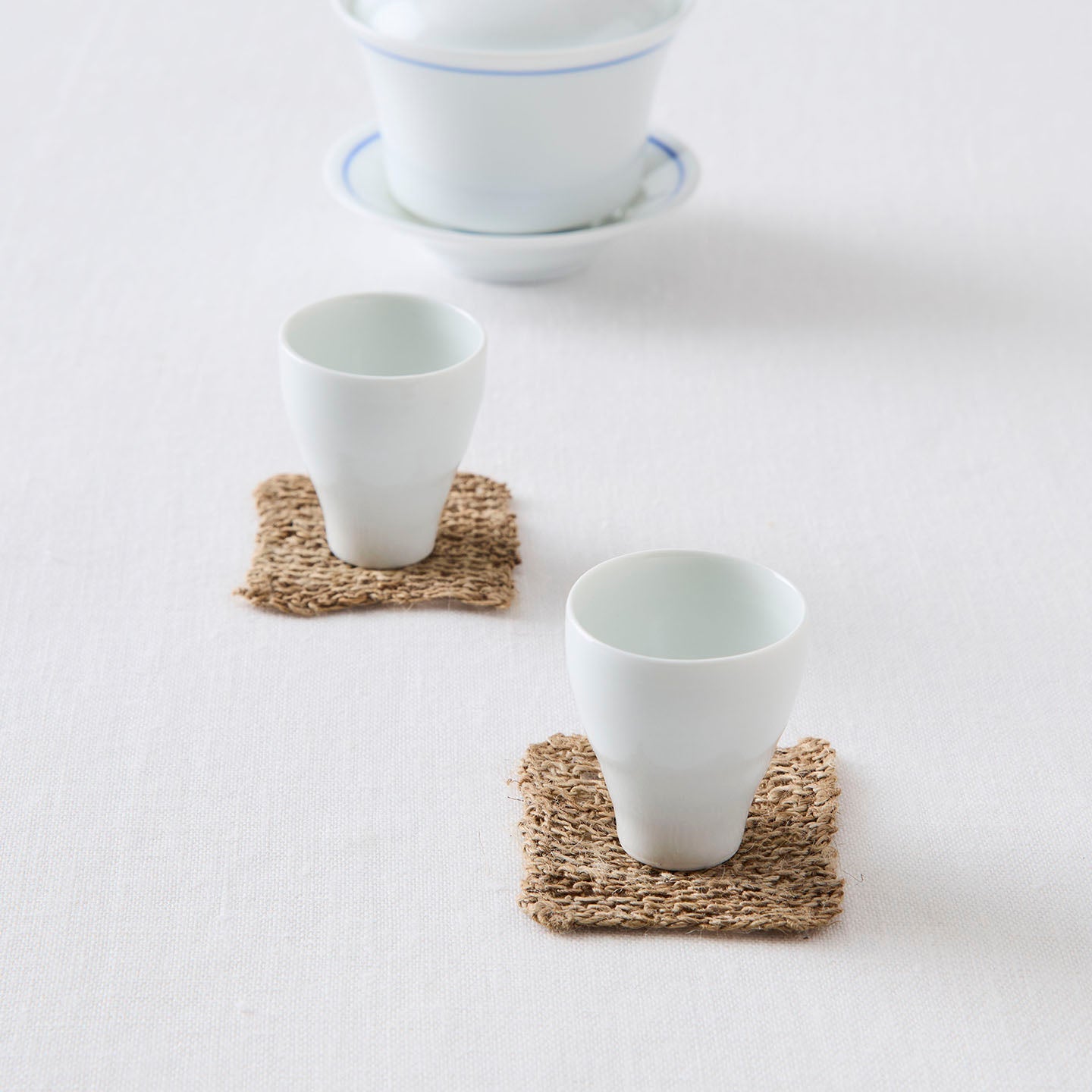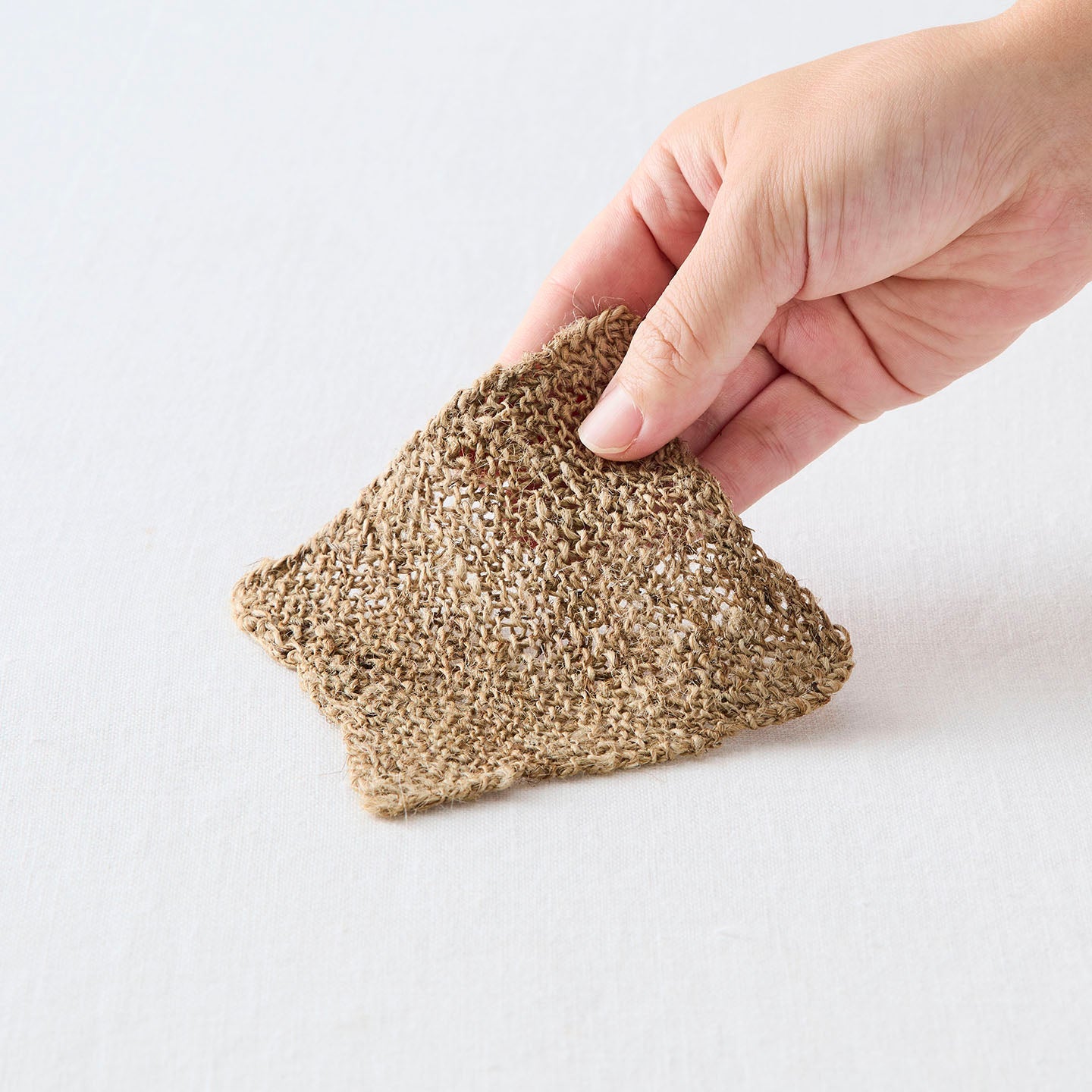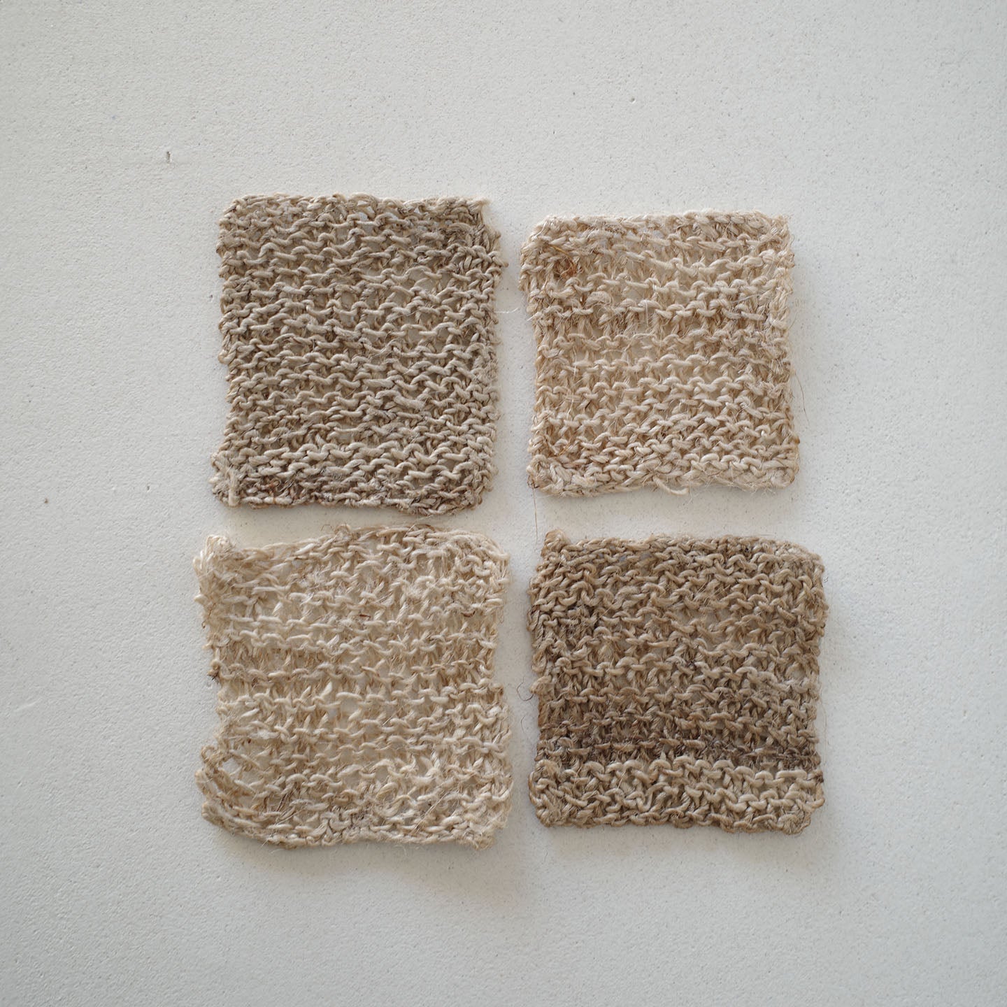 おおよそ5cm角の「ニットクロス」は、小ぶりな茶杯やお猪口、グラスの敷物にぴったり。オオイラクサの繊維はウールのようにやわらかく、使い込むほどに色合いが深まっていきます。