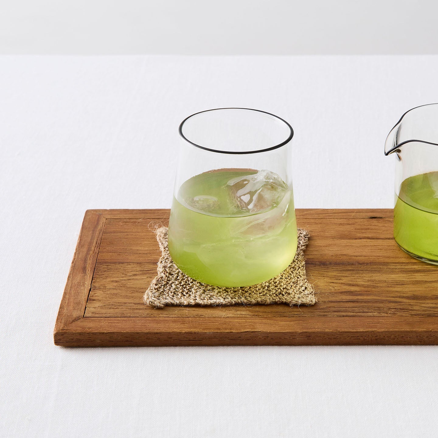「ニットクロス」には、おおよそ10cm角サイズのご用意もあります。マグカップや茶壷を置くのにちょうどいいサイズ感です。一輪挿しの花瓶や小さなオブジェを置いて、インテリアとしても楽しめます。