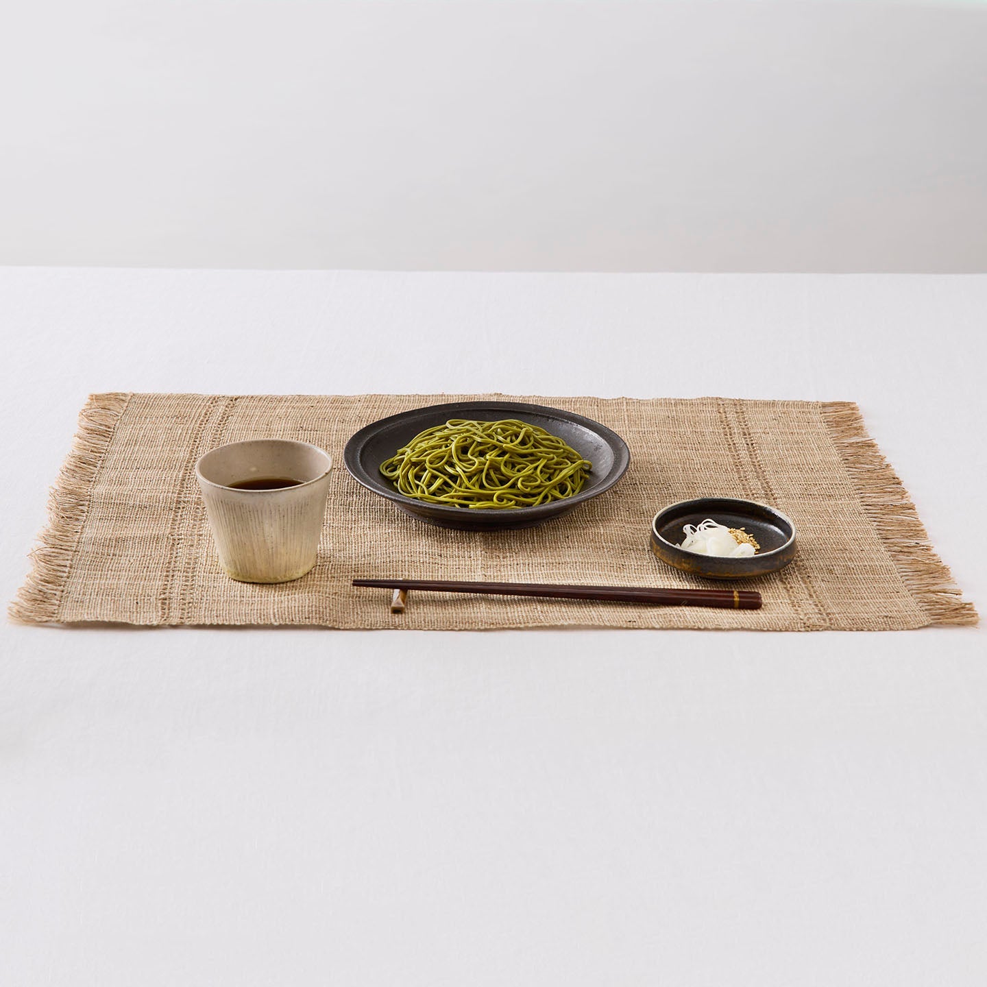 グレーがかったブラウンと自然の風合いは、陶器やガラス、木製、金属、どんな材質の茶具とも相性がよく、スタイリングに迷う楽しい時間が待っています。