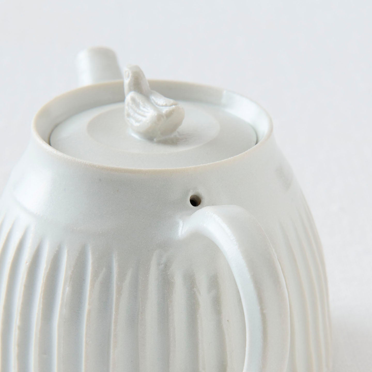 ちょこんと蓋に鎮座した小鳥に目が釘付けになる、ころんとした「茶壷」。