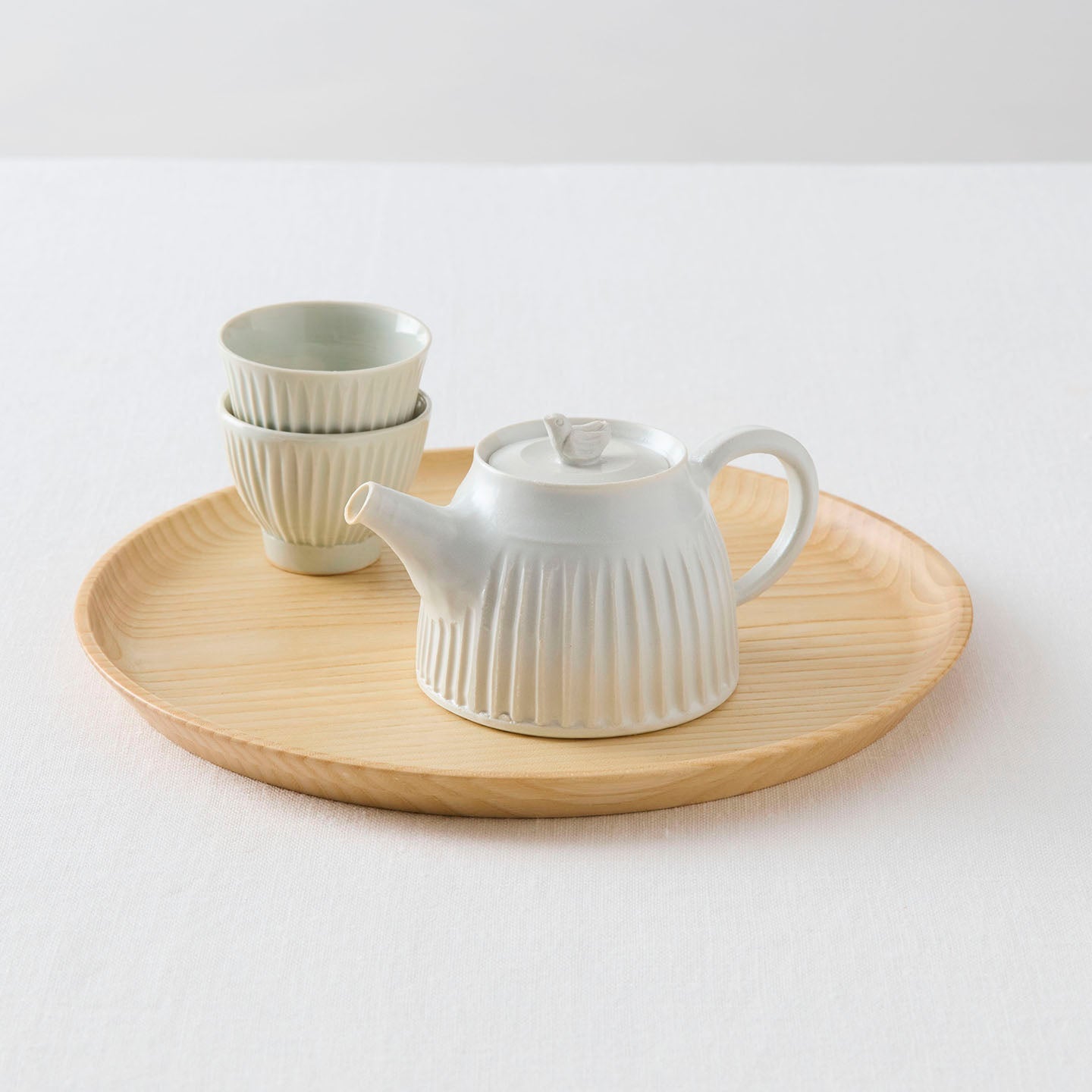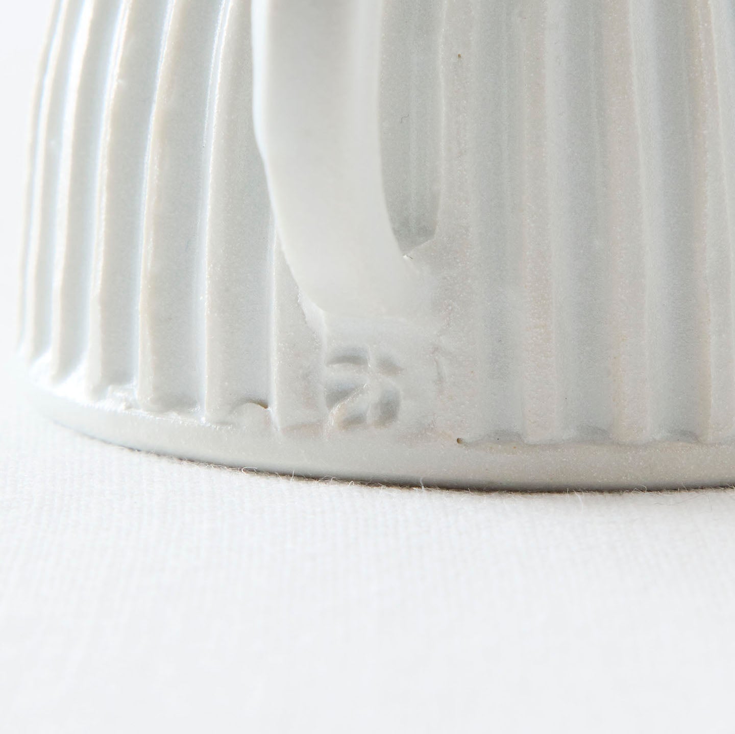 素地の表面を削ってつくる「鎬(しのぎ)」と呼ばれる模様は、ひと彫りずつ手仕事で行われるため、等間隔のように見えて、小さなゆらぎがあり、ほっこりとした印象があります。