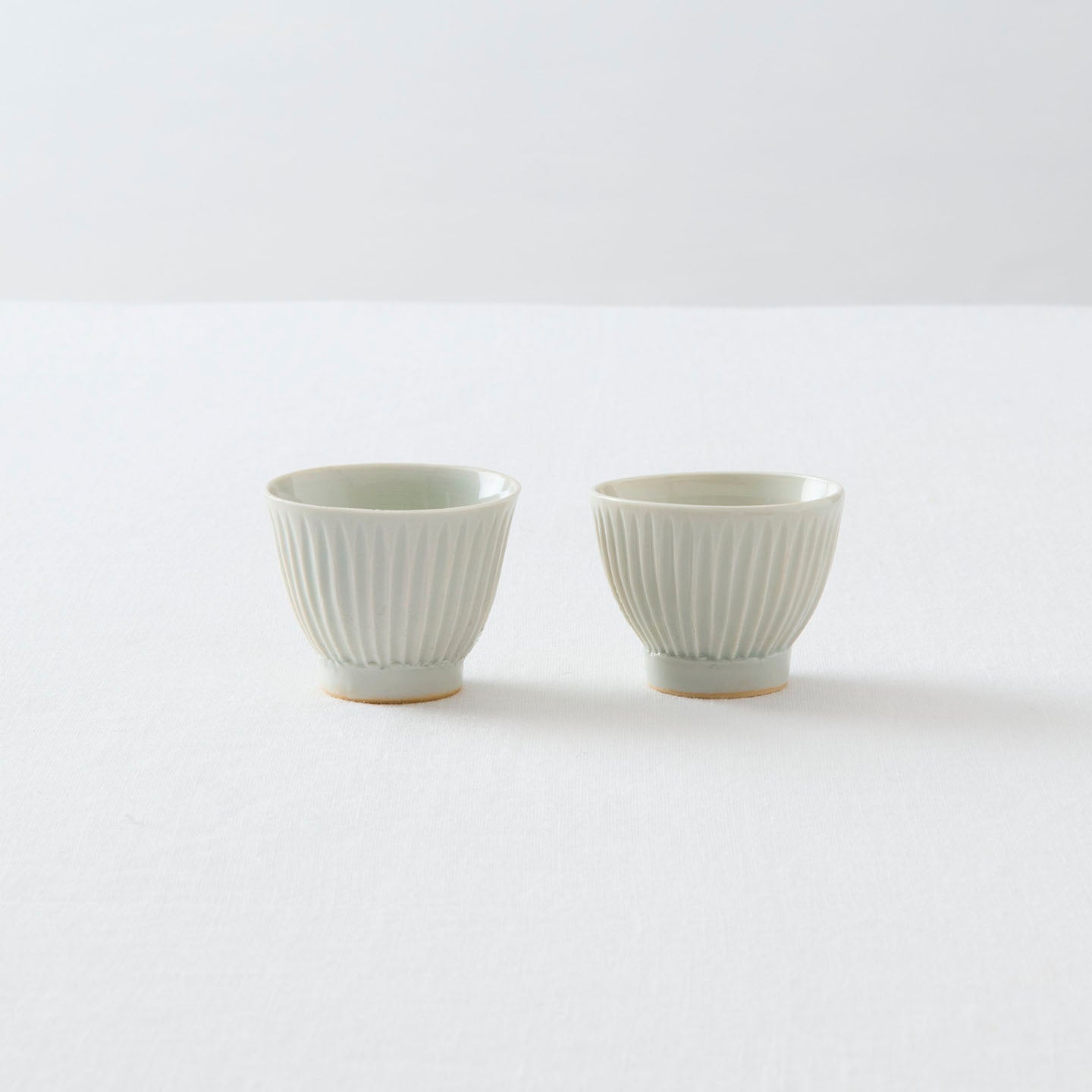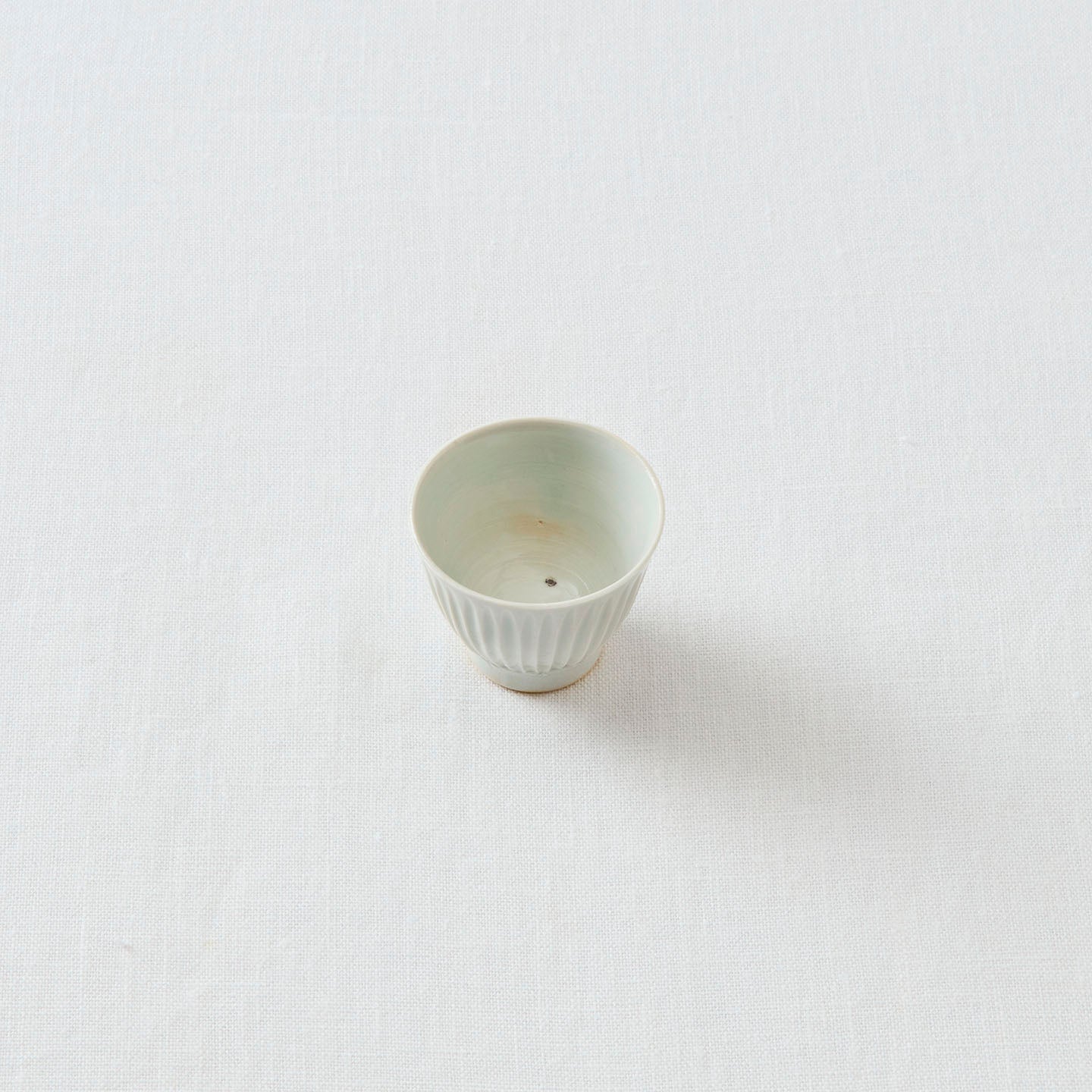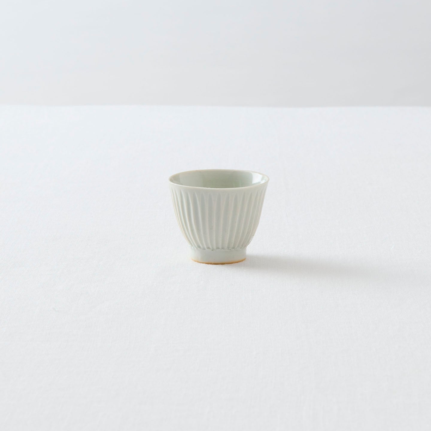 稜線が際立った「鎬茶杯」。手仕事ならではの細やかさと、ぬくもりが同居していて、親しみが感じられる佇まいです。