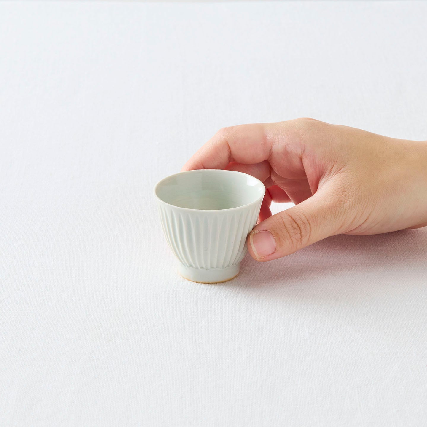 わずかに広がったフチと鎬模様が指先にぴたりとフィットします。おかげで、自然とお茶の味わいに気持ちを傾けることができます。