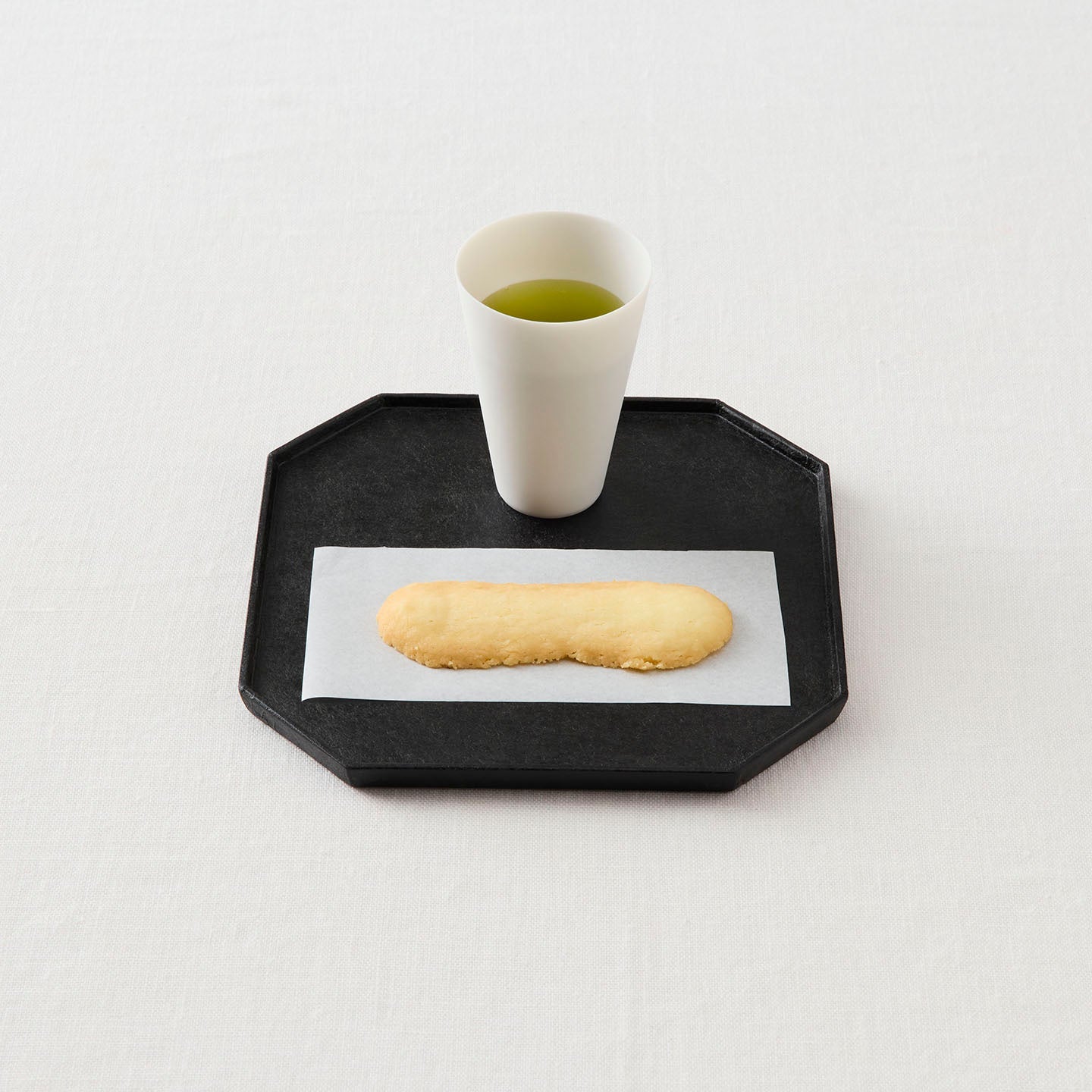 茶道具とのコーディネートが楽しめる木製の八角形の「ティートレー」。厚さ1cmほどの薄さで、ふわりと手に取れるほどの軽さを持ち合わせています。スタイリッシュでありながら、日常使いにもぴったりな使い勝手の良さが魅力です。
