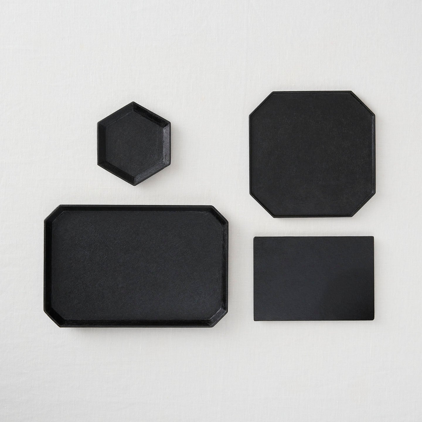しかも、一切の装飾を排除することにより、陶磁器やガラス、金属などの異なる素材と合わせたとき、引き立て役に徹するのも組み合わせの妙です。和紙のテクスチャを生かした、漆塗りの折敷や盆、トレーが裏方の主役と言わんばかりに活躍します。